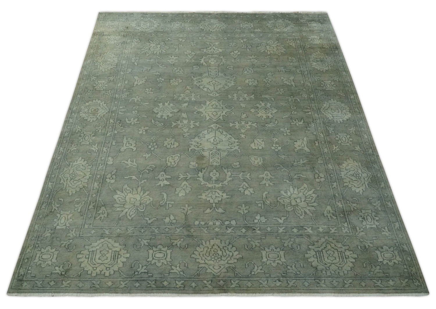Gray, Silver and Charcoal Hand Knotted antique look Traditional Oushak 8x10 wool area Rug