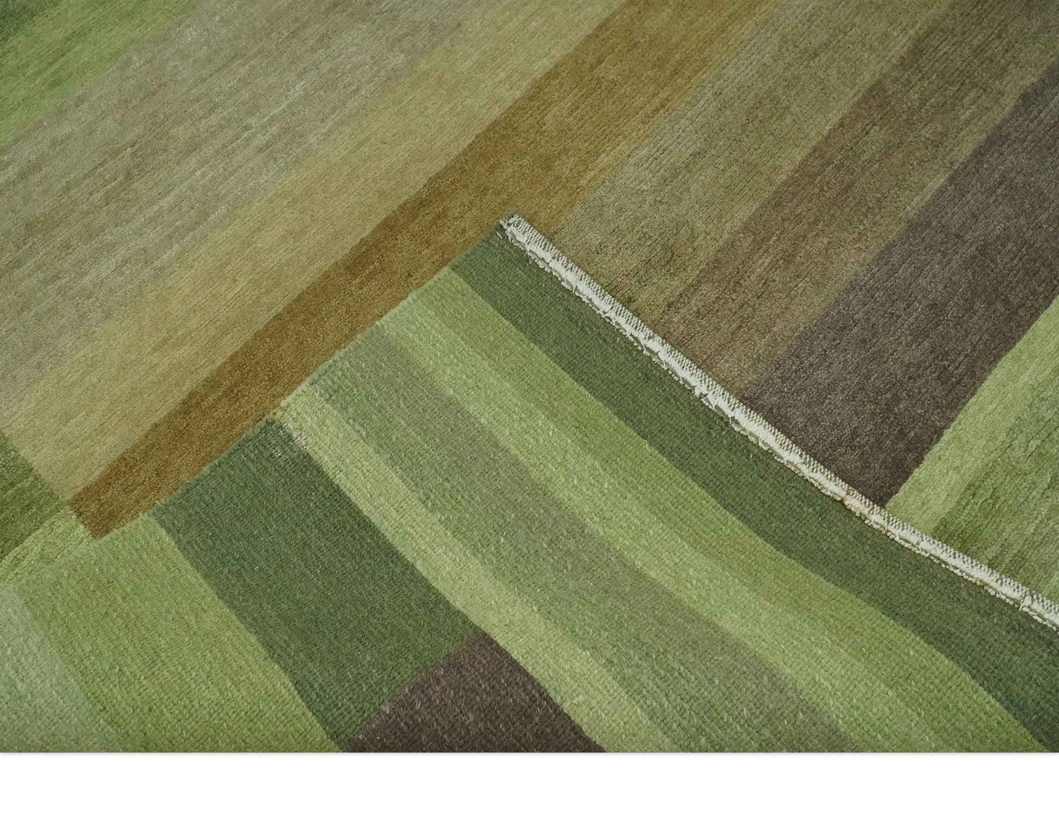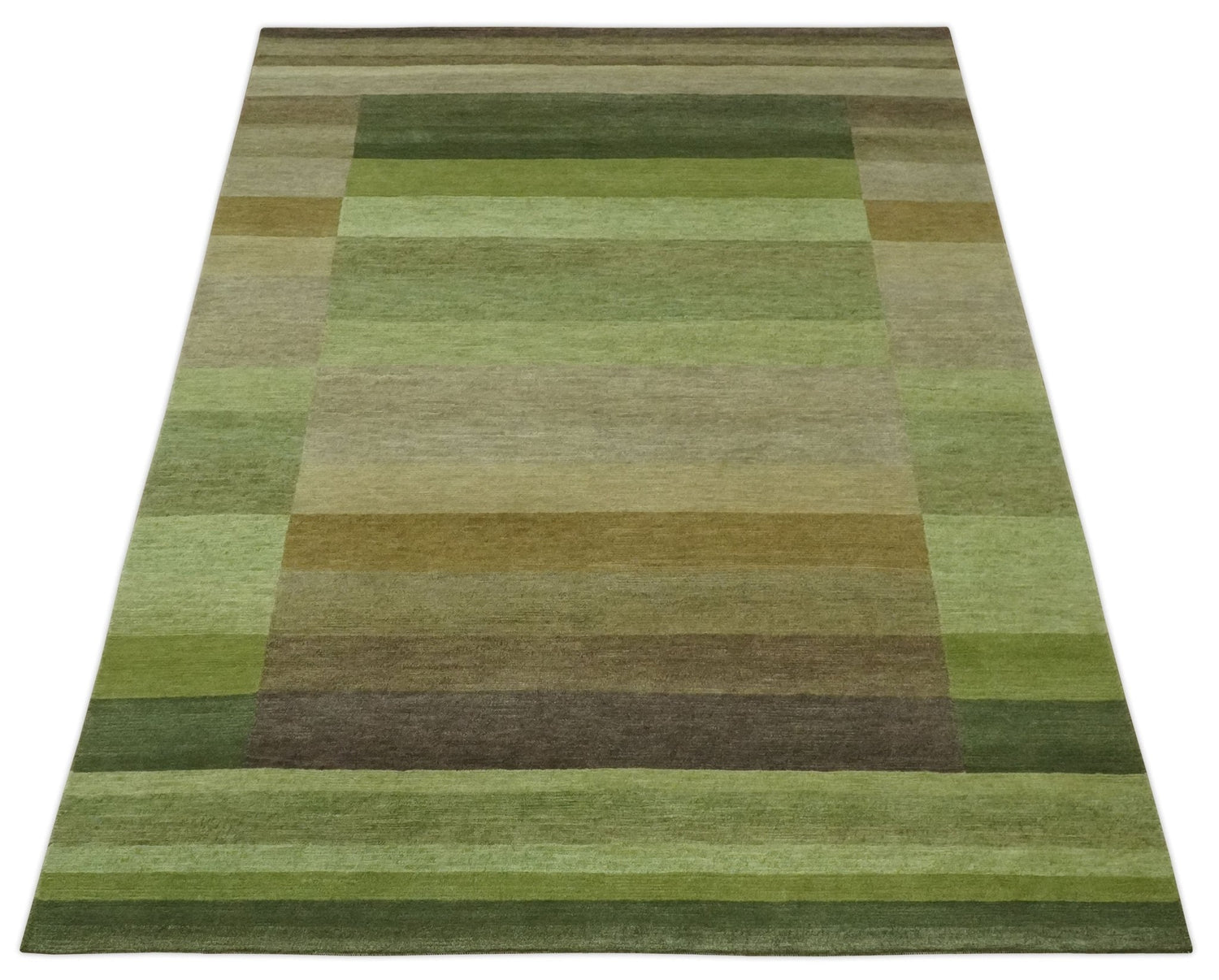 Green and Brown Shades Modern Stripes Design 6x8 Hand loom Wool area Rug