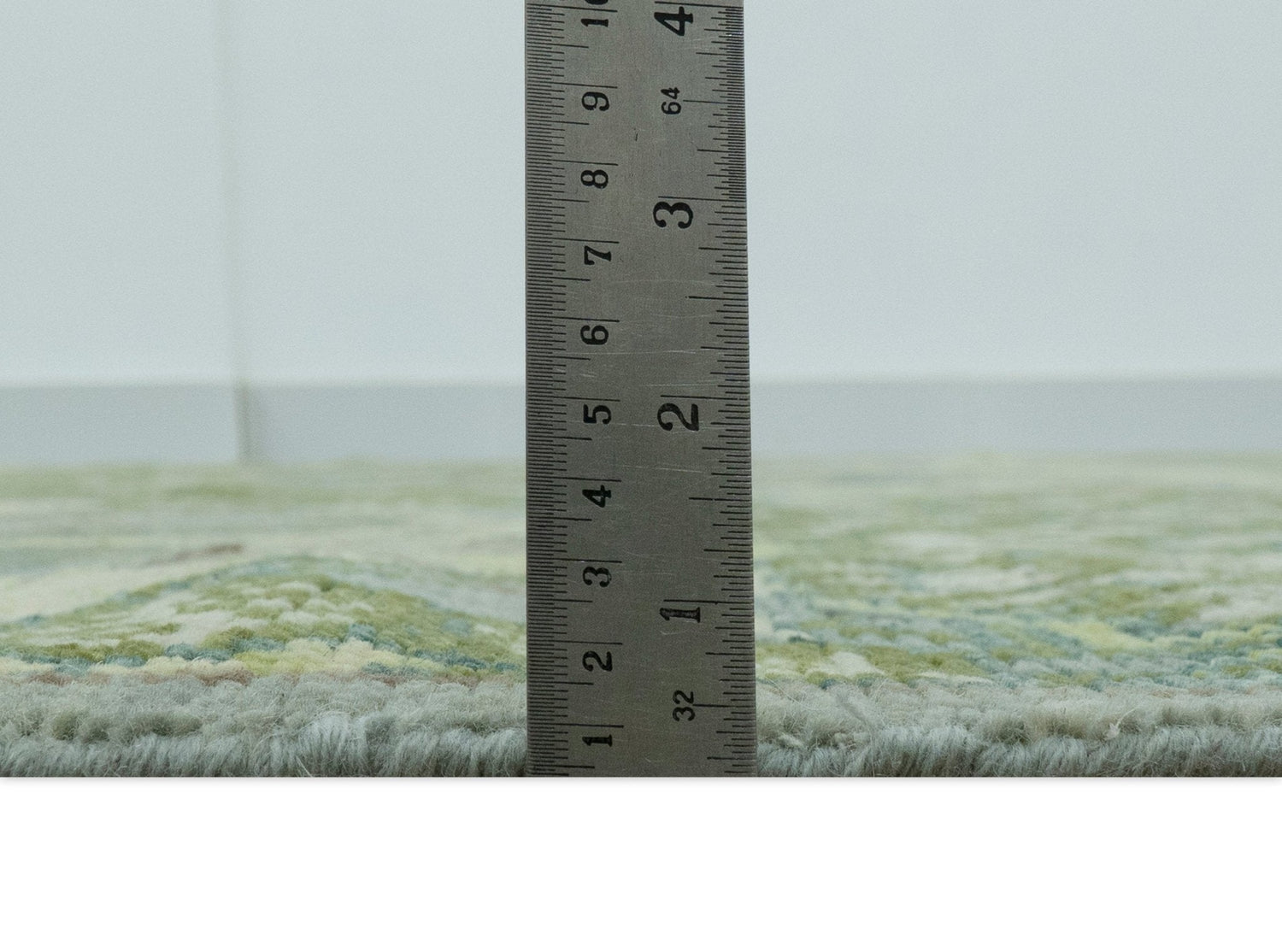 This hand knotted wool area rug features a beautiful nature with shades of green, yellow and gray. Crafted with care, this custom made rug adds a touch of luxury to any space. Made from premium quality wool, it offers both durability and softness underfoot. Transform your room with this stunning rug.