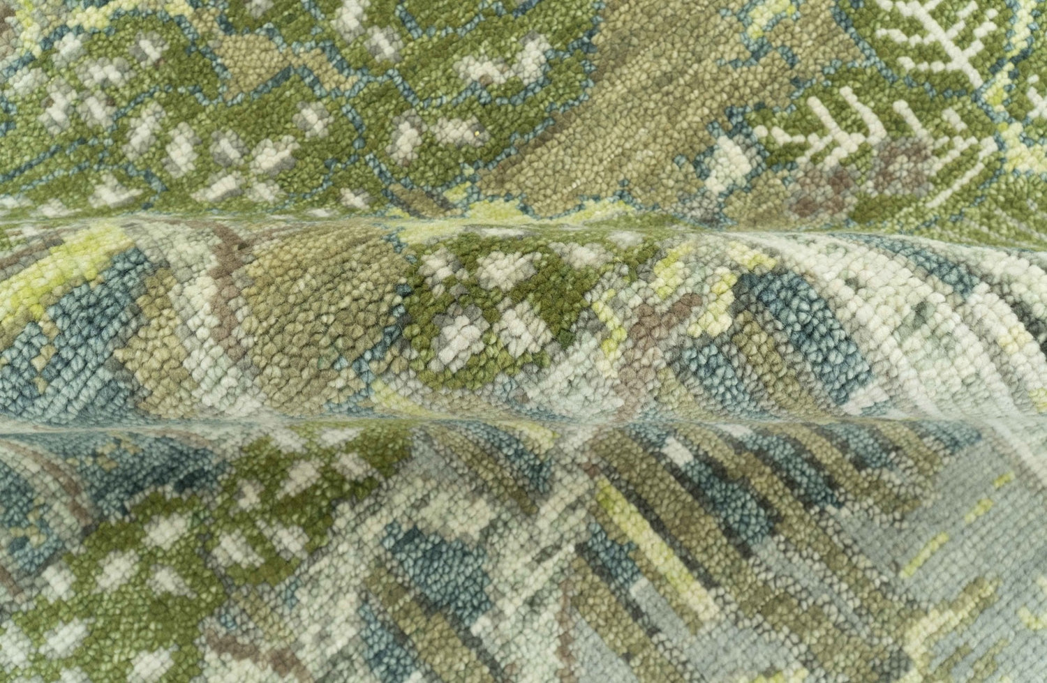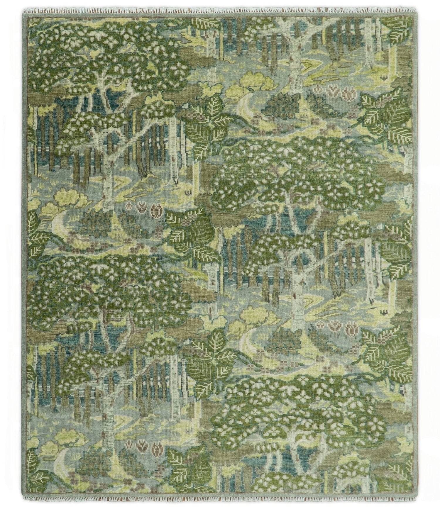 Green And Gray Nature Jungle Hand Knotted Custom Made wool area rug
