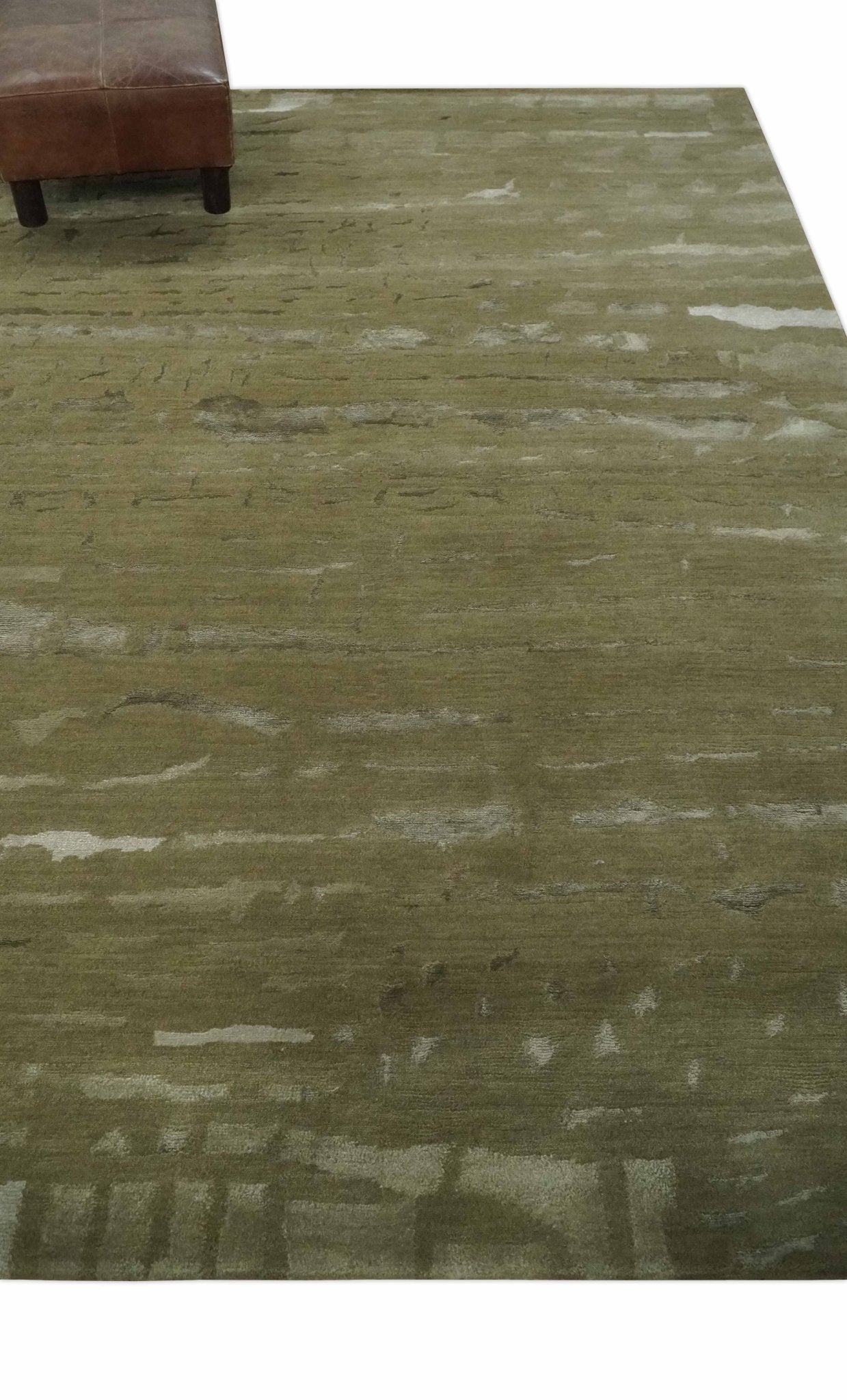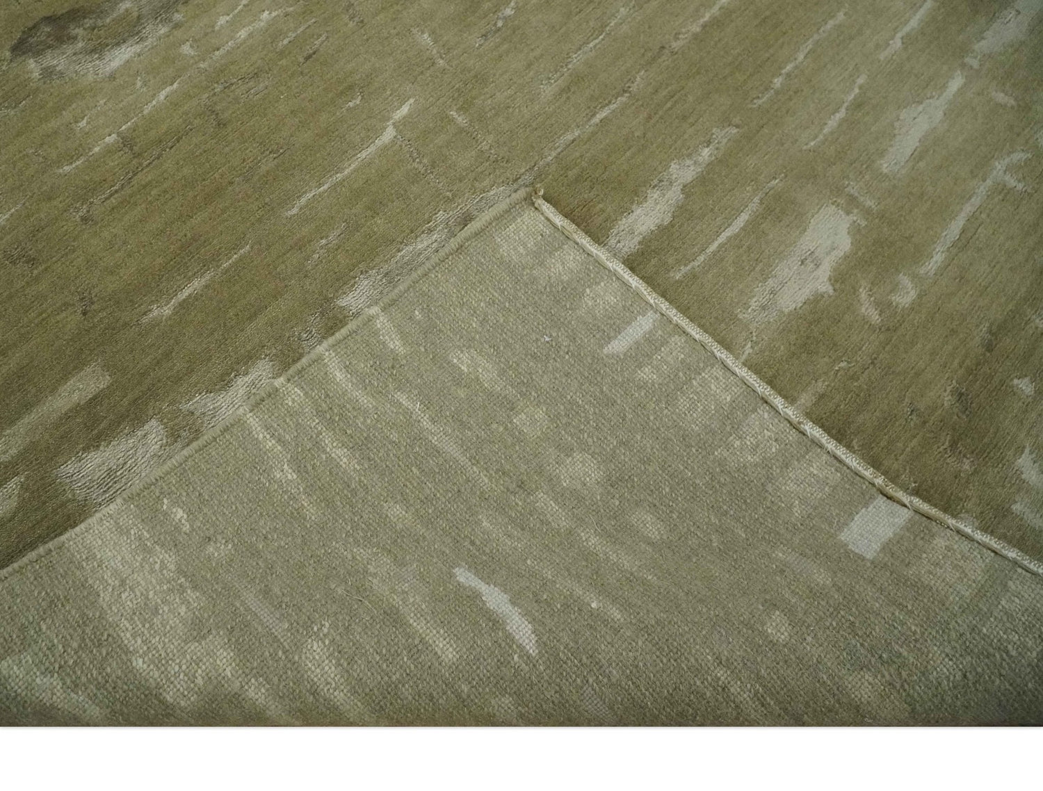 Green and Silver Modern Abstract Hand loom 5x7 wool and Art Silk Area Rug