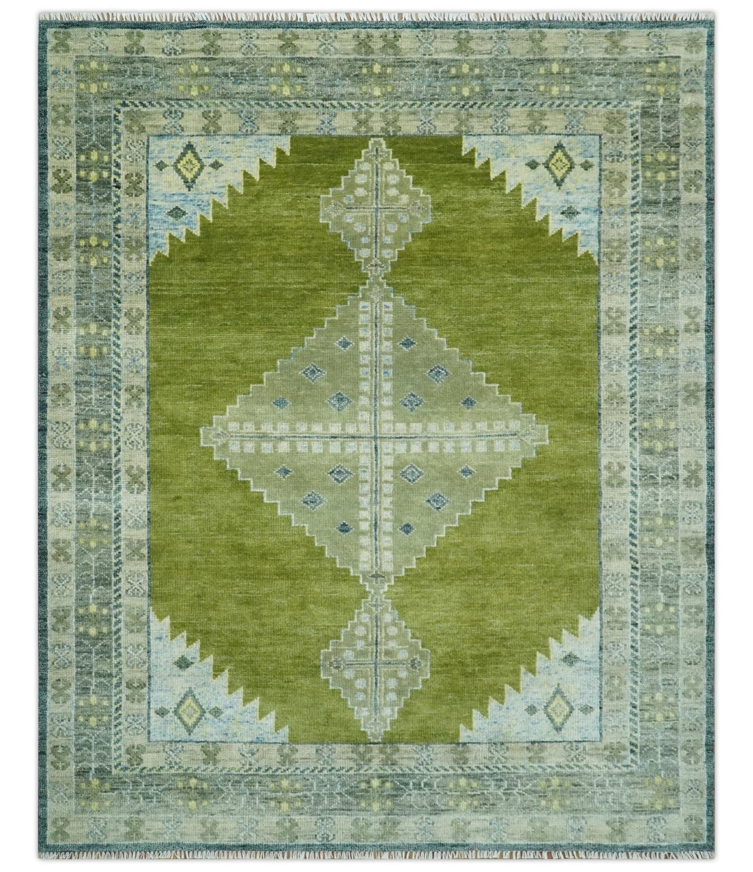 Green, Blue and Gray Hand Knotted Traditional Heriz 8x10 wool area rug