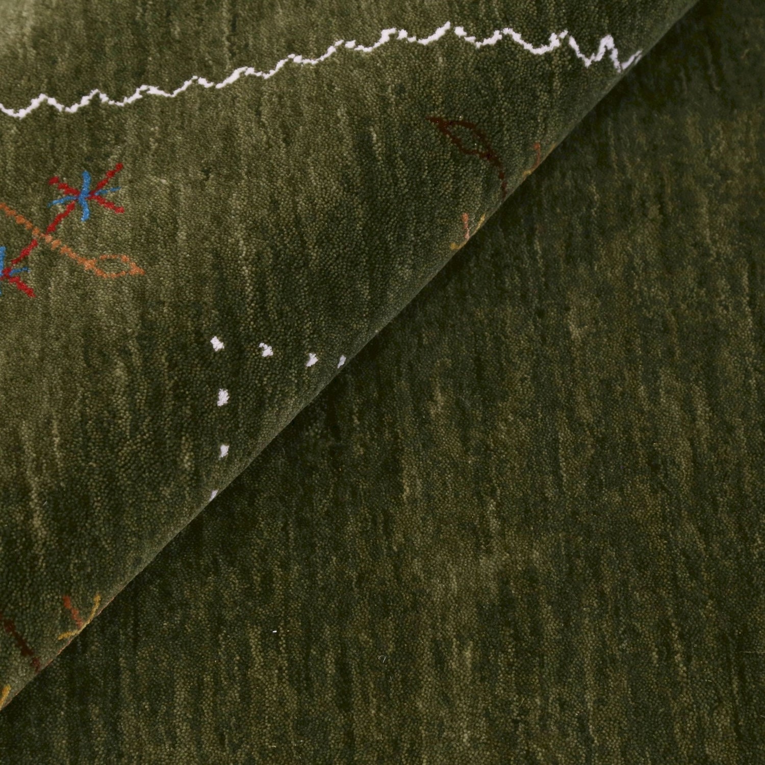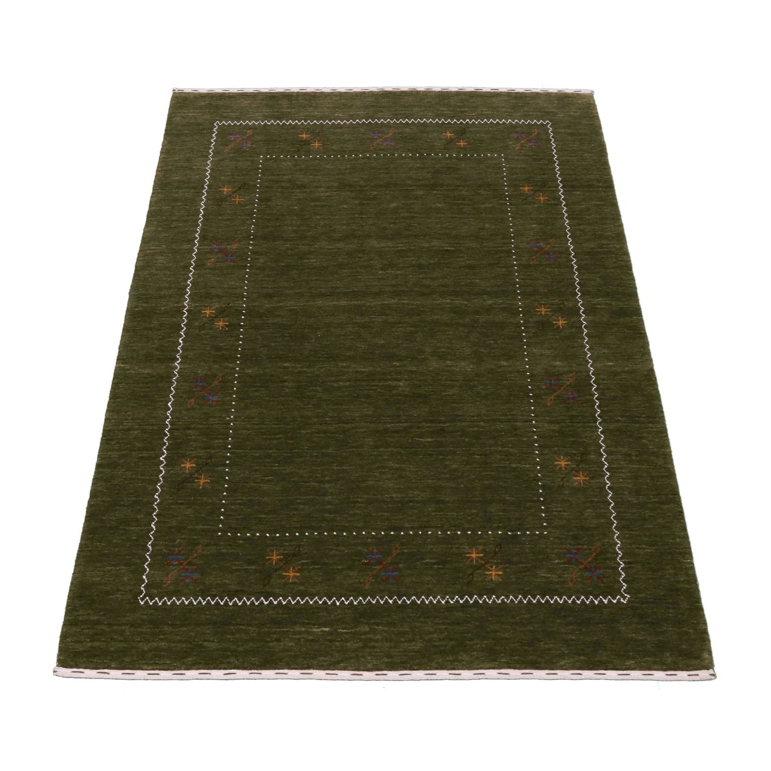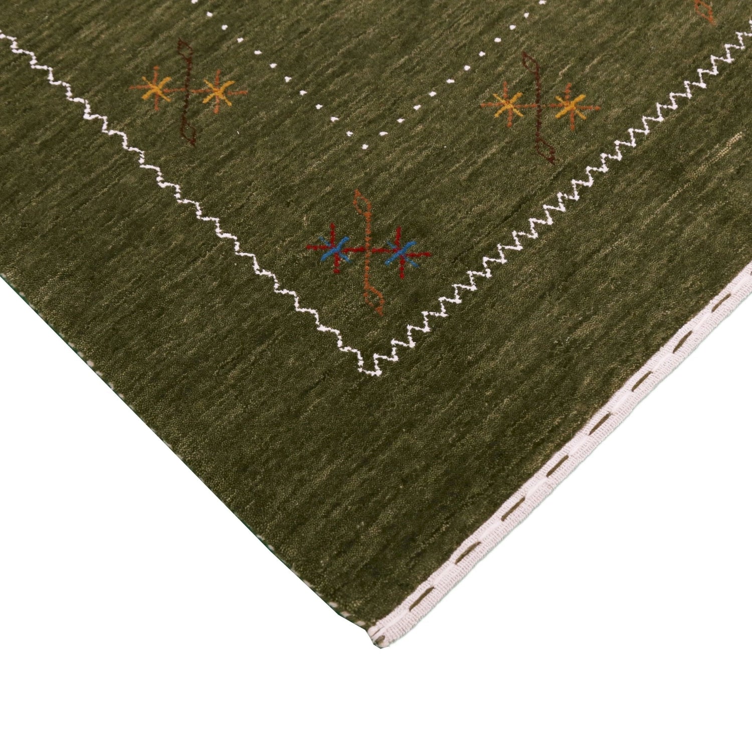 Green Modern Gabbeh Border Design Hand Loomed Wool Area Rug