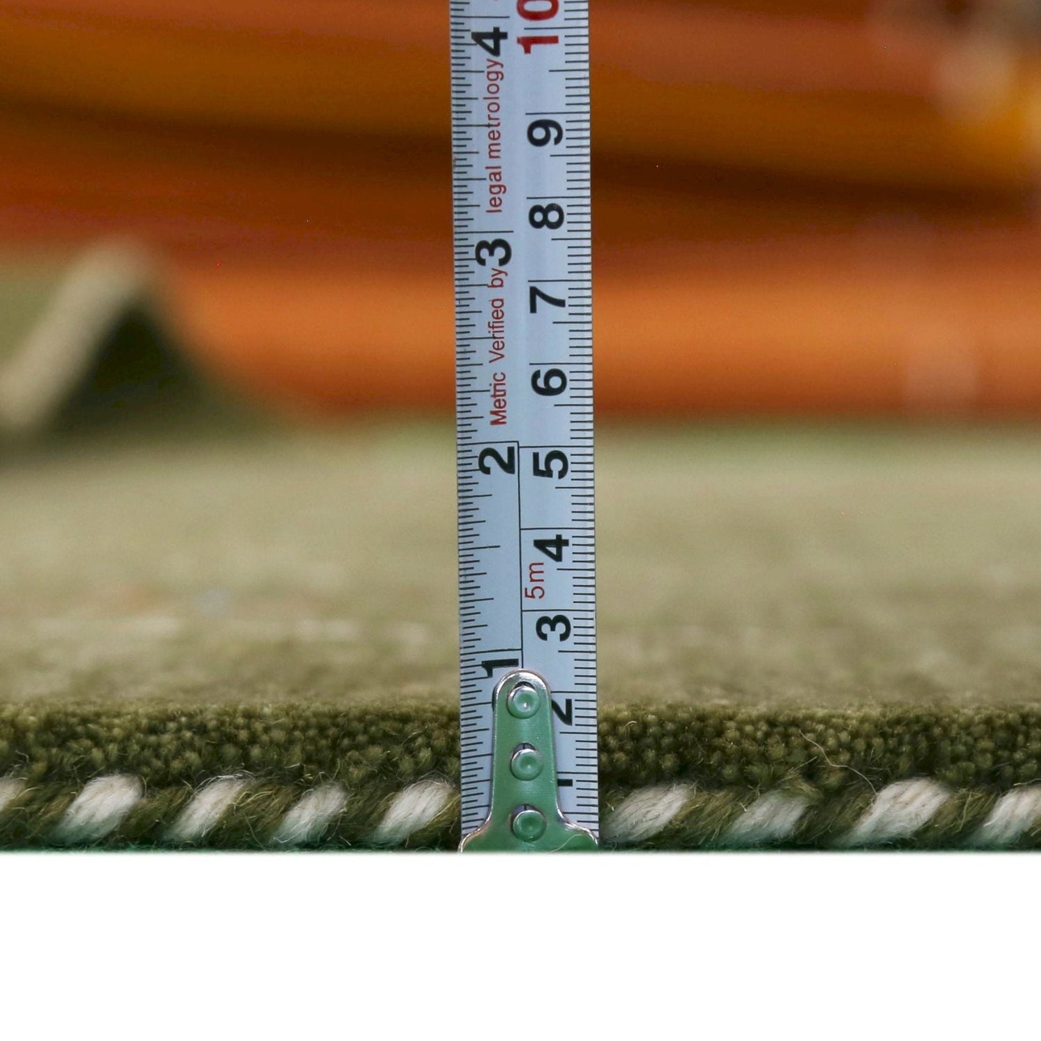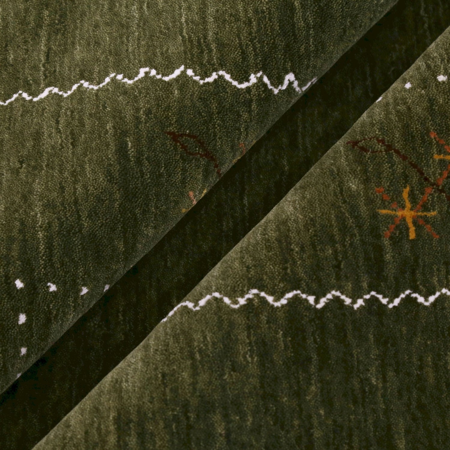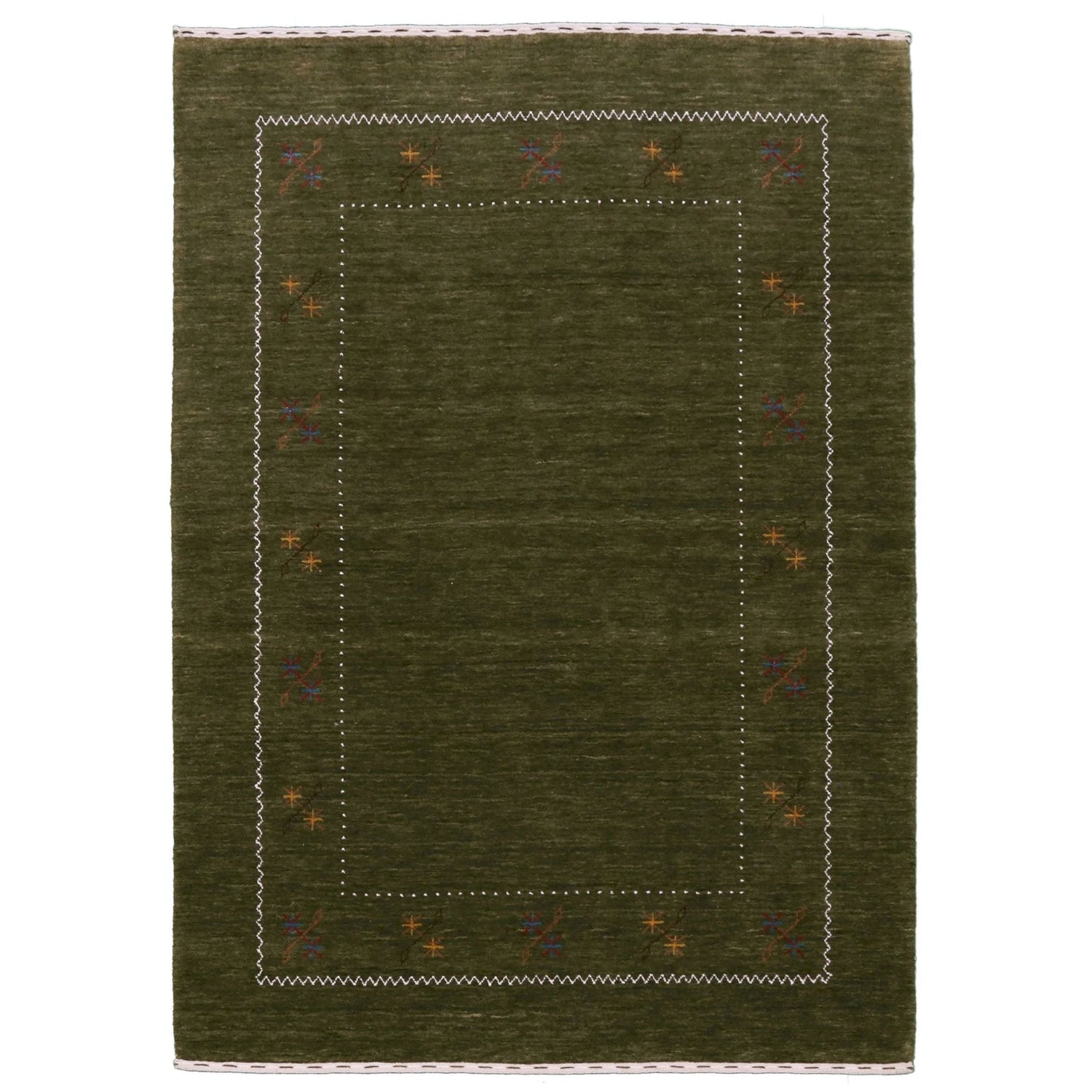 Green Modern Gabbeh Border Design Hand Loomed Wool Area Rug