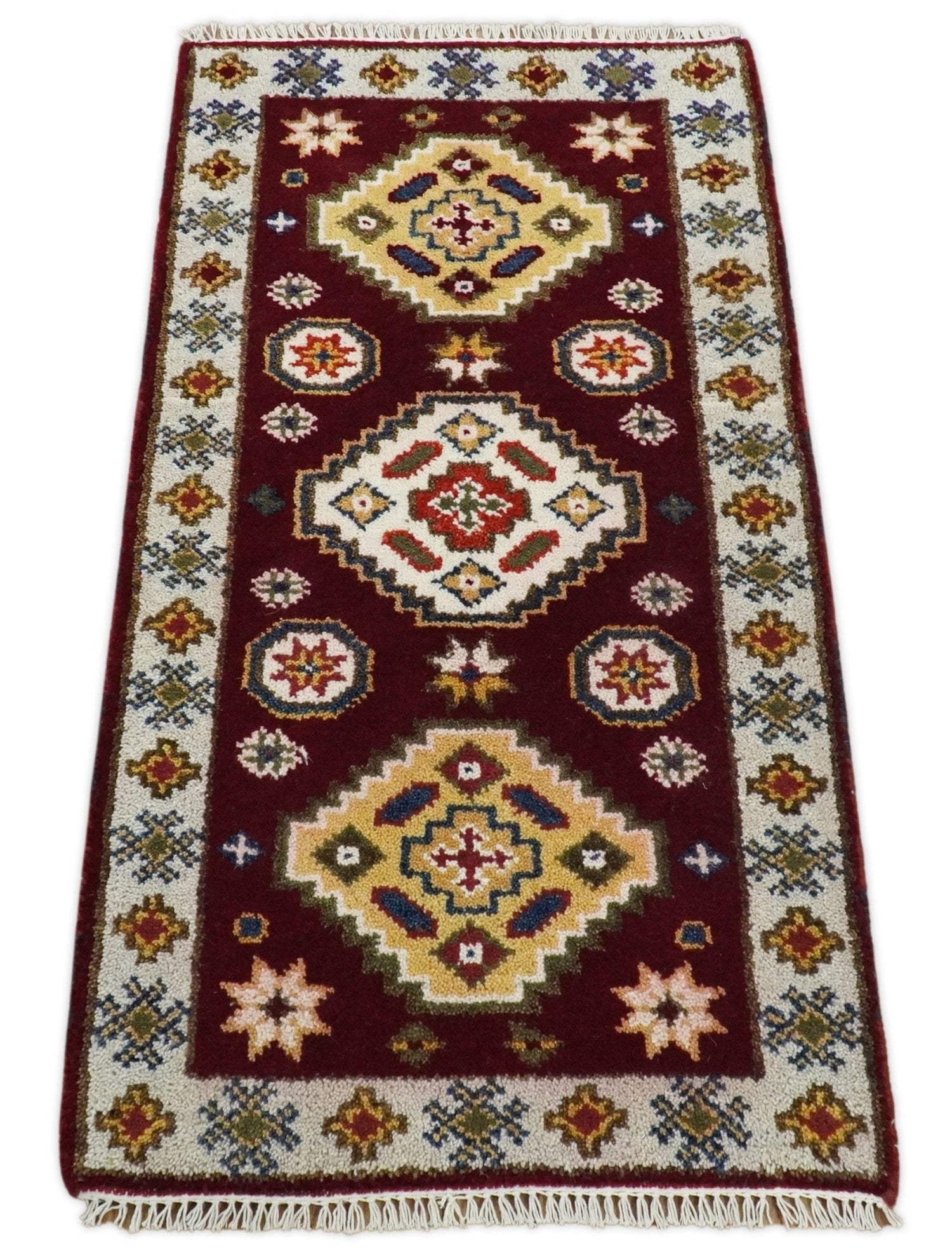 Hallway 2x4 Red and Beige Wool Hand Knotted traditional Persian Vintage Antique Southwestern Kazak | TRDCP29624