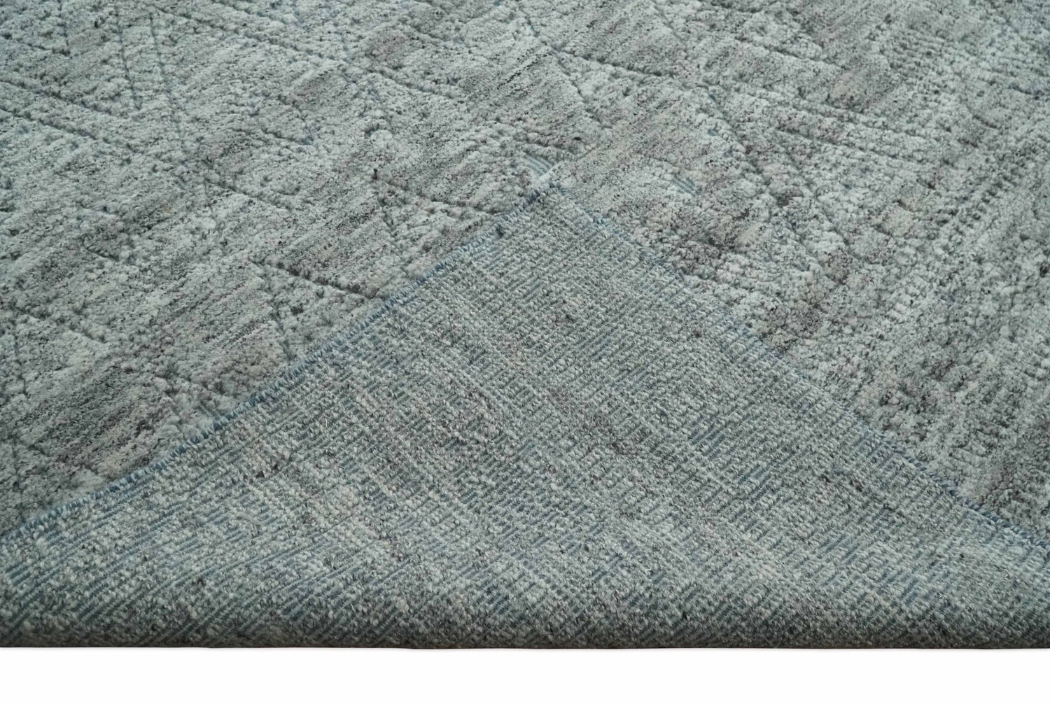 Hand carved Geometrical Design Ivory, Gray and Charcoal Hand knotted wool Area Rug