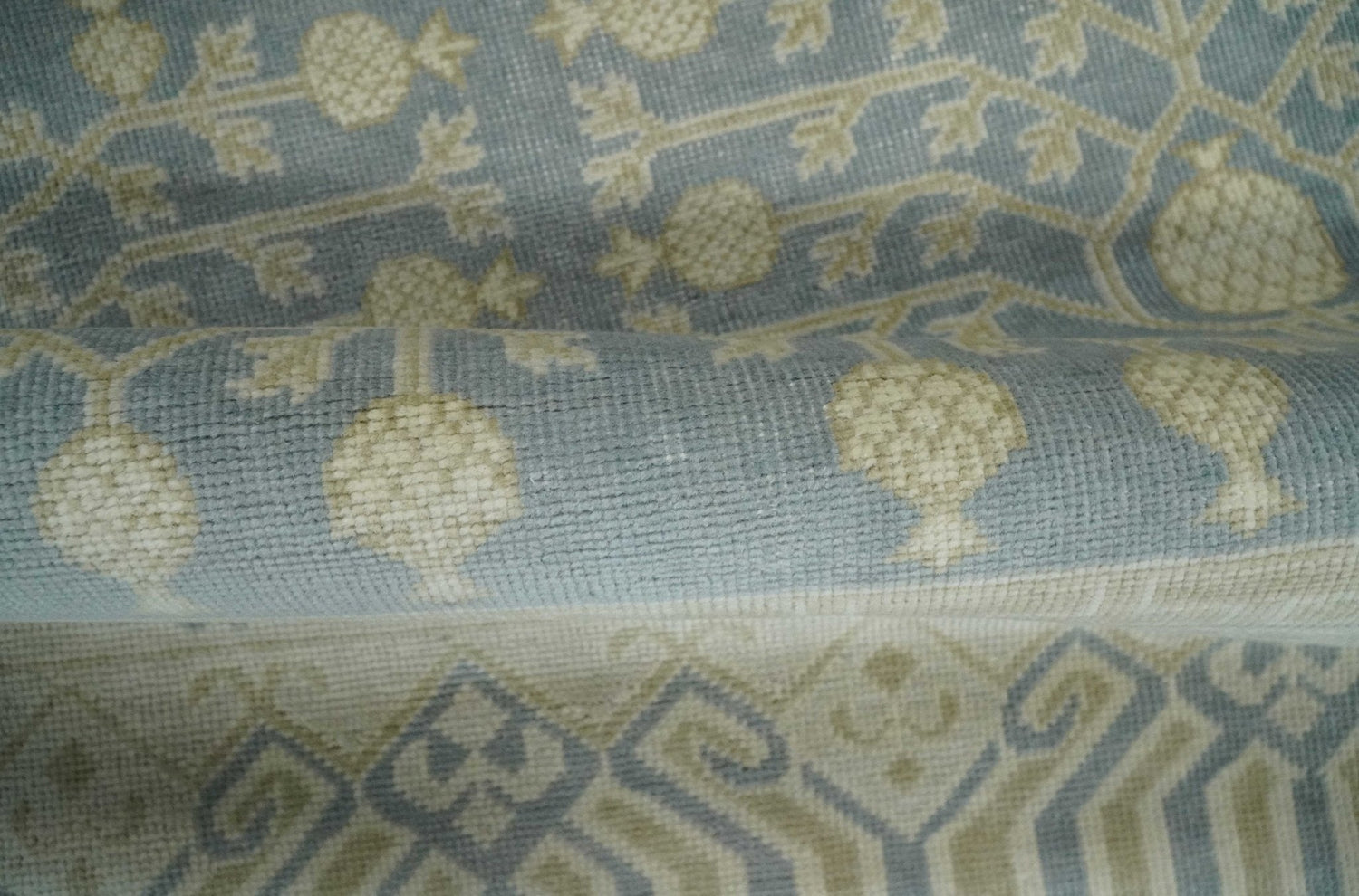 This specific rug is made in India, in the city of Bhadohi. Bhadohi is one of the biggest rug manufacturing cities. Carpet weaving in the region dates back to the 16th century during the reign of Akbar. The skilled artisans of Bhadohi have been carrying the tradition of rug-making for centuries.