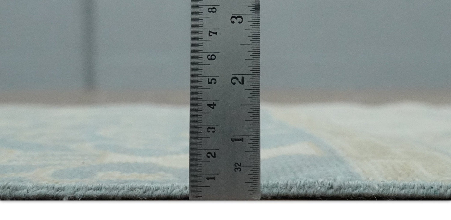 This Hand Knotted rug has been made with fine Handspun Wool and the traditional design of the rug gives the room a classic look and feel. The rug has a very low pile because of a unique oxidization process.