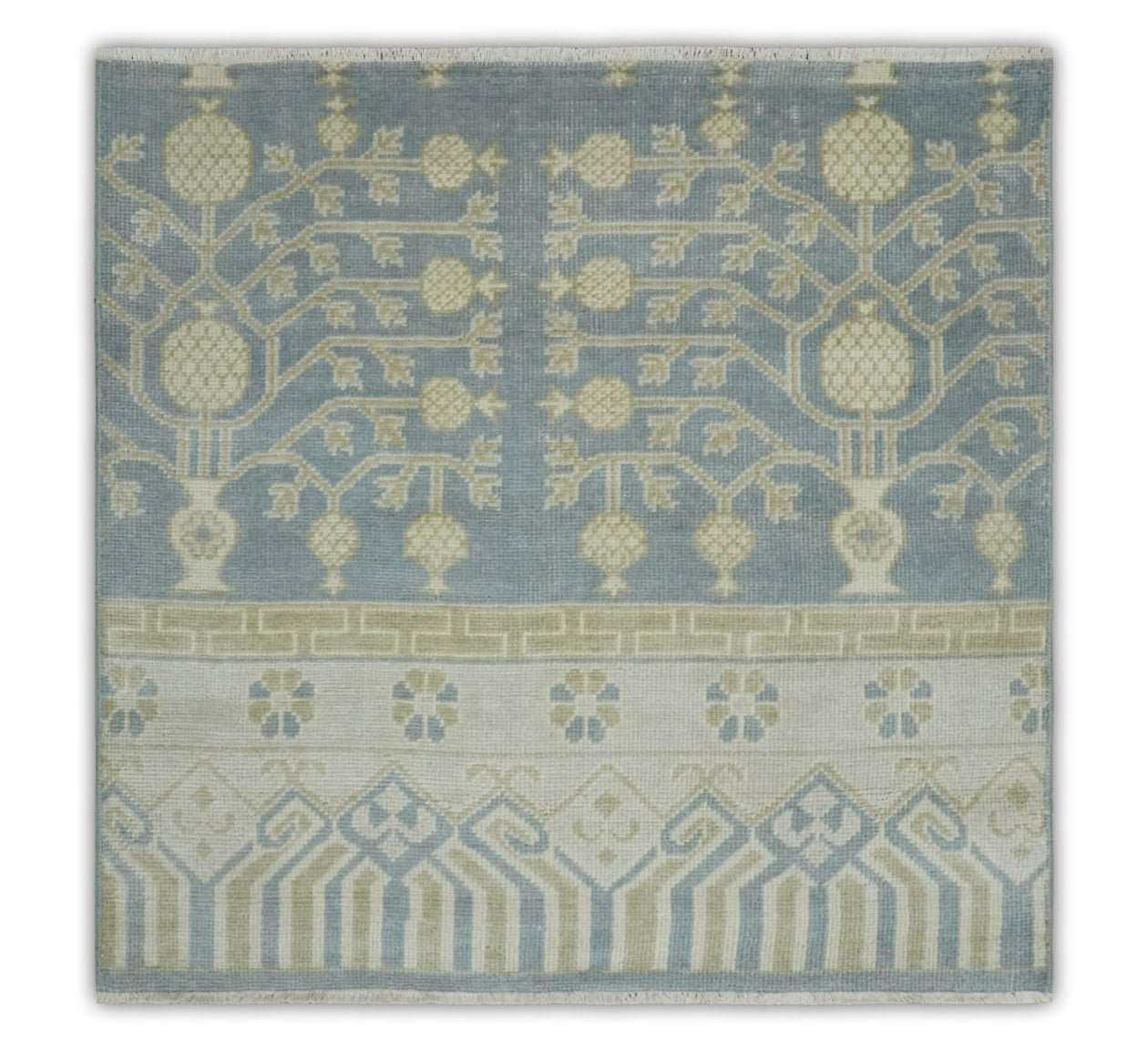 Hand Knotted 3x3 Gray, Ivory and Beige Traditional Low Pile Wool Rug, Bedside Rug | N35033 - 3x3 is backordered and will ship as soon as it is back in stock.