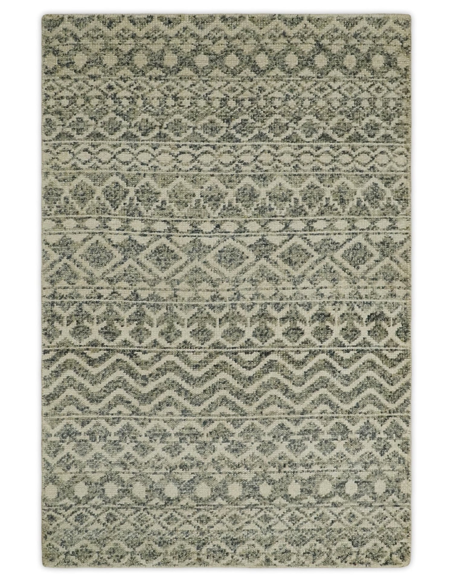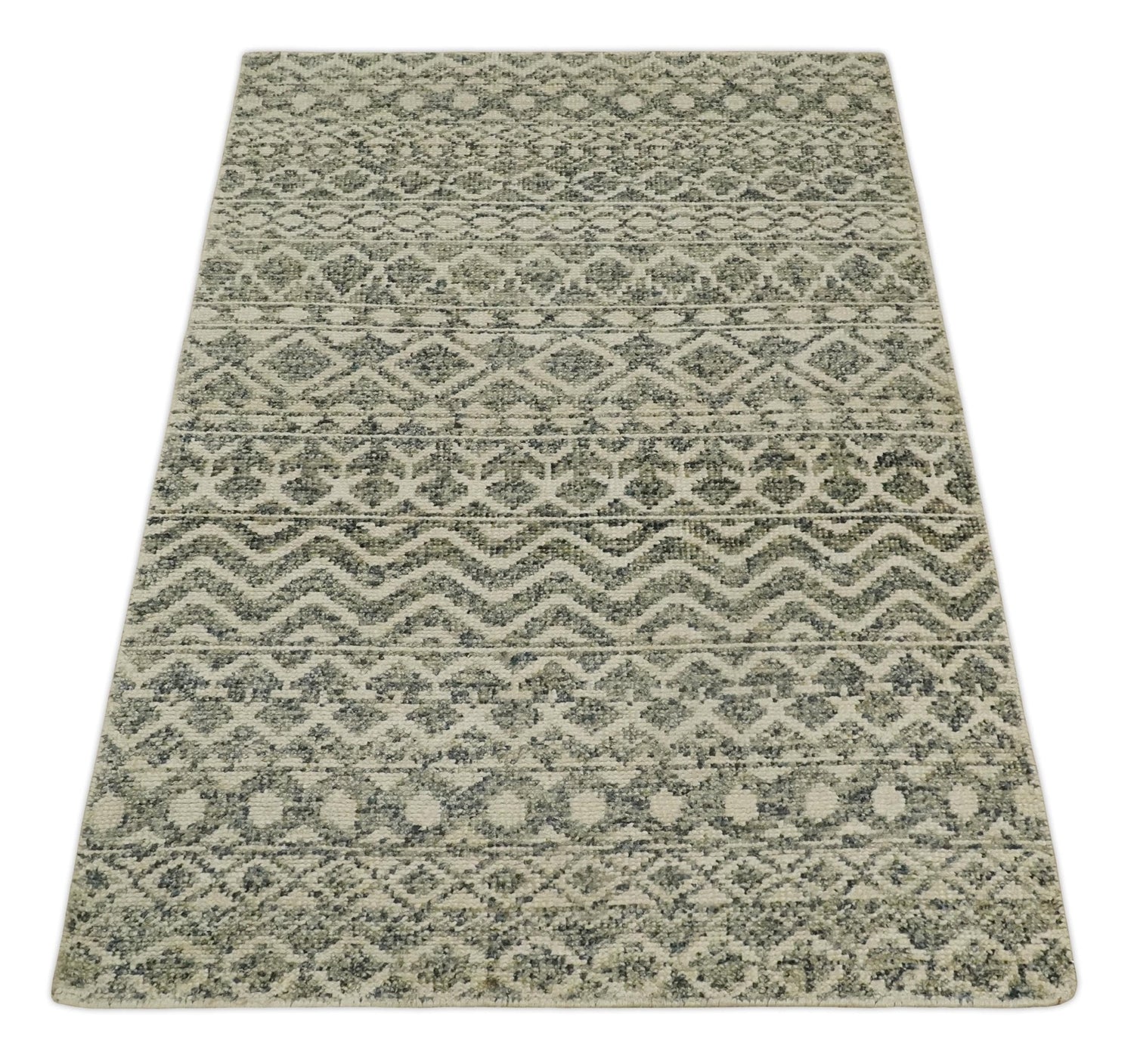 Hand Knotted 4x6 Beige, Camel and Olive Modern Contemporary Southwestern Tribal Trellis Recycled Silk Area Rug | OP59