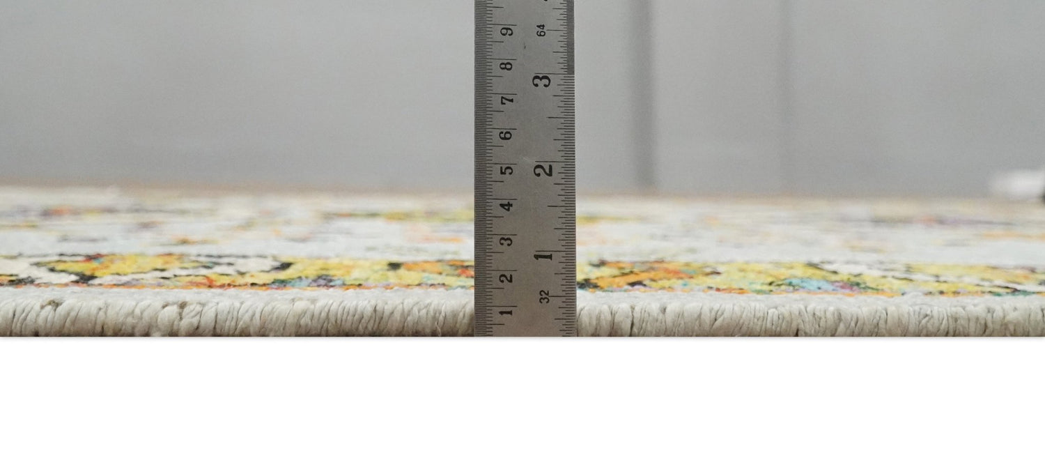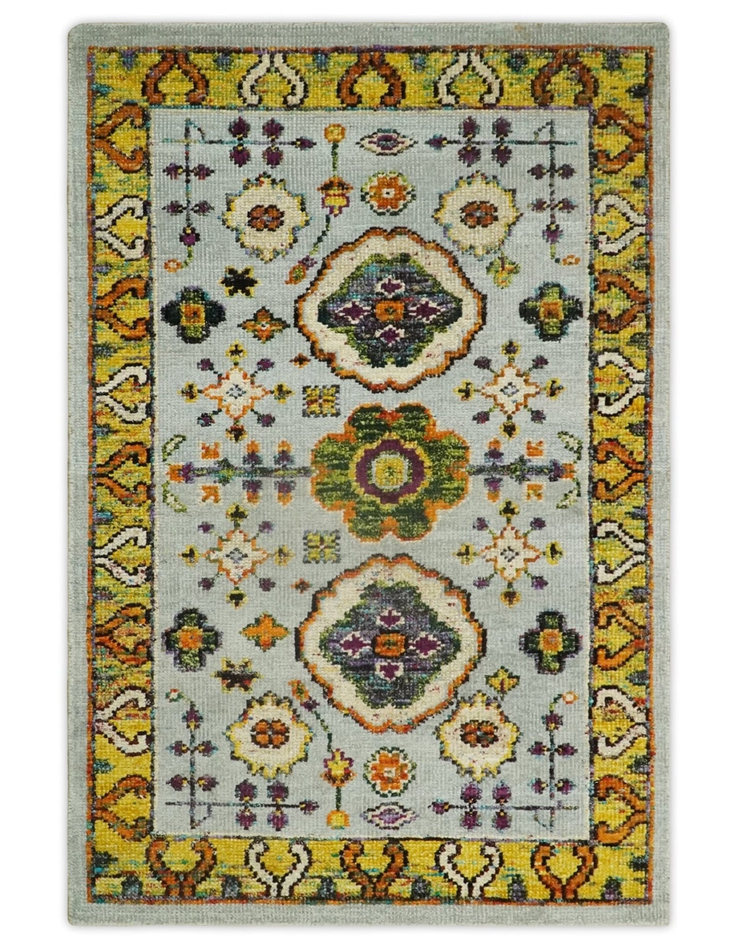 Hand Knotted 4x6 Silver, Mustard and Gold Persian Oushak made of Recycled Silk Area Rug | OP65 - 4x6 is backordered and will ship as soon as it is back in stock.