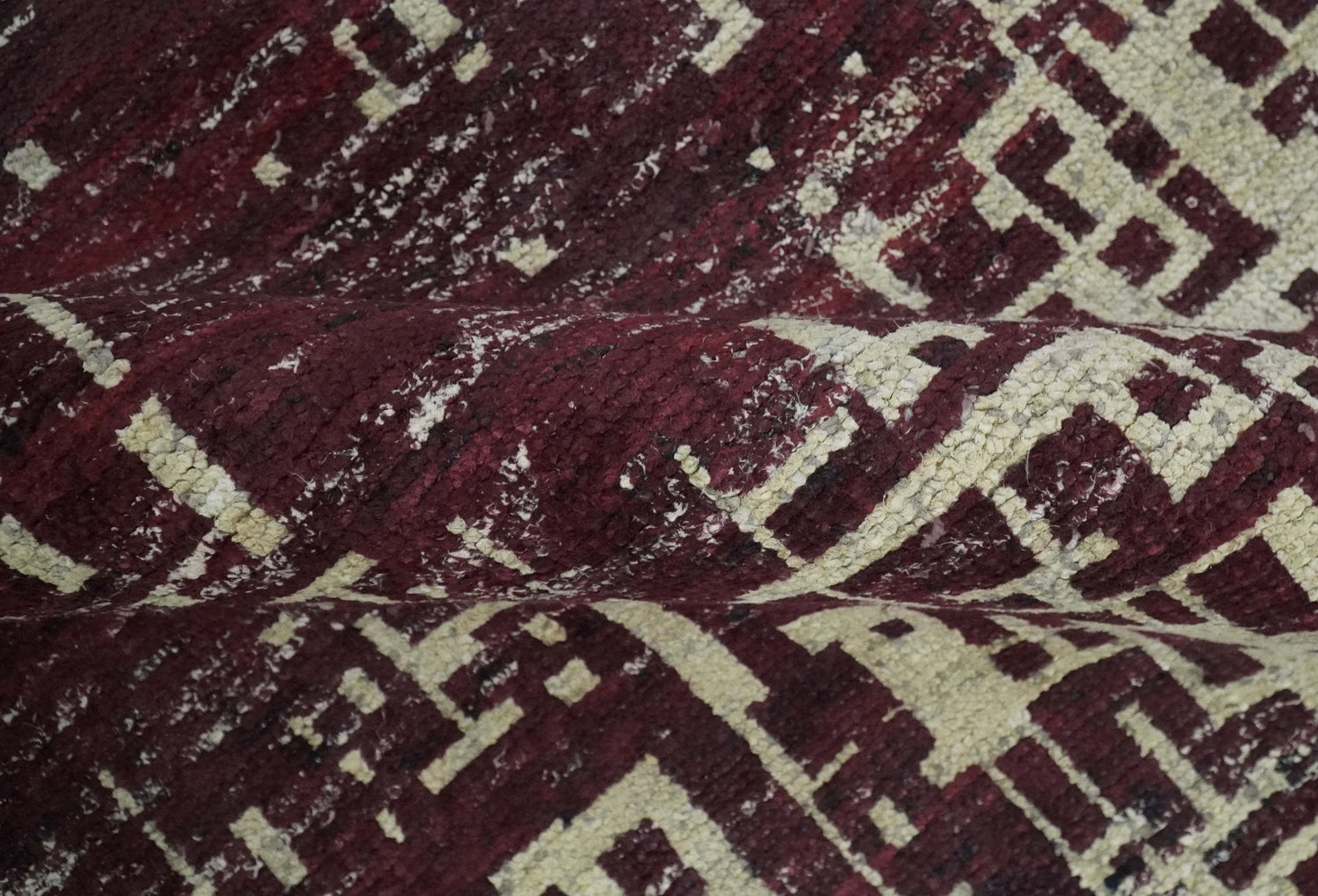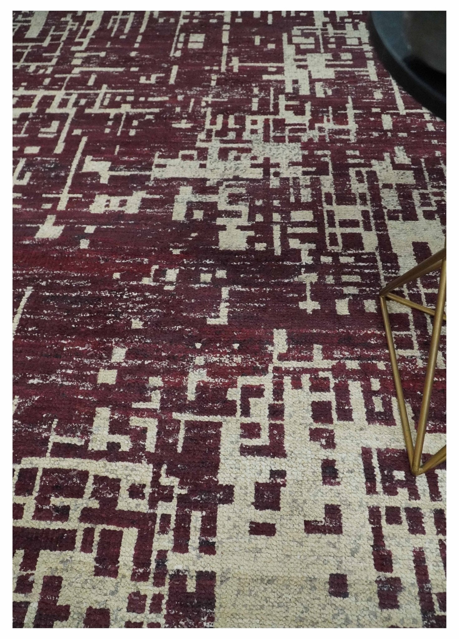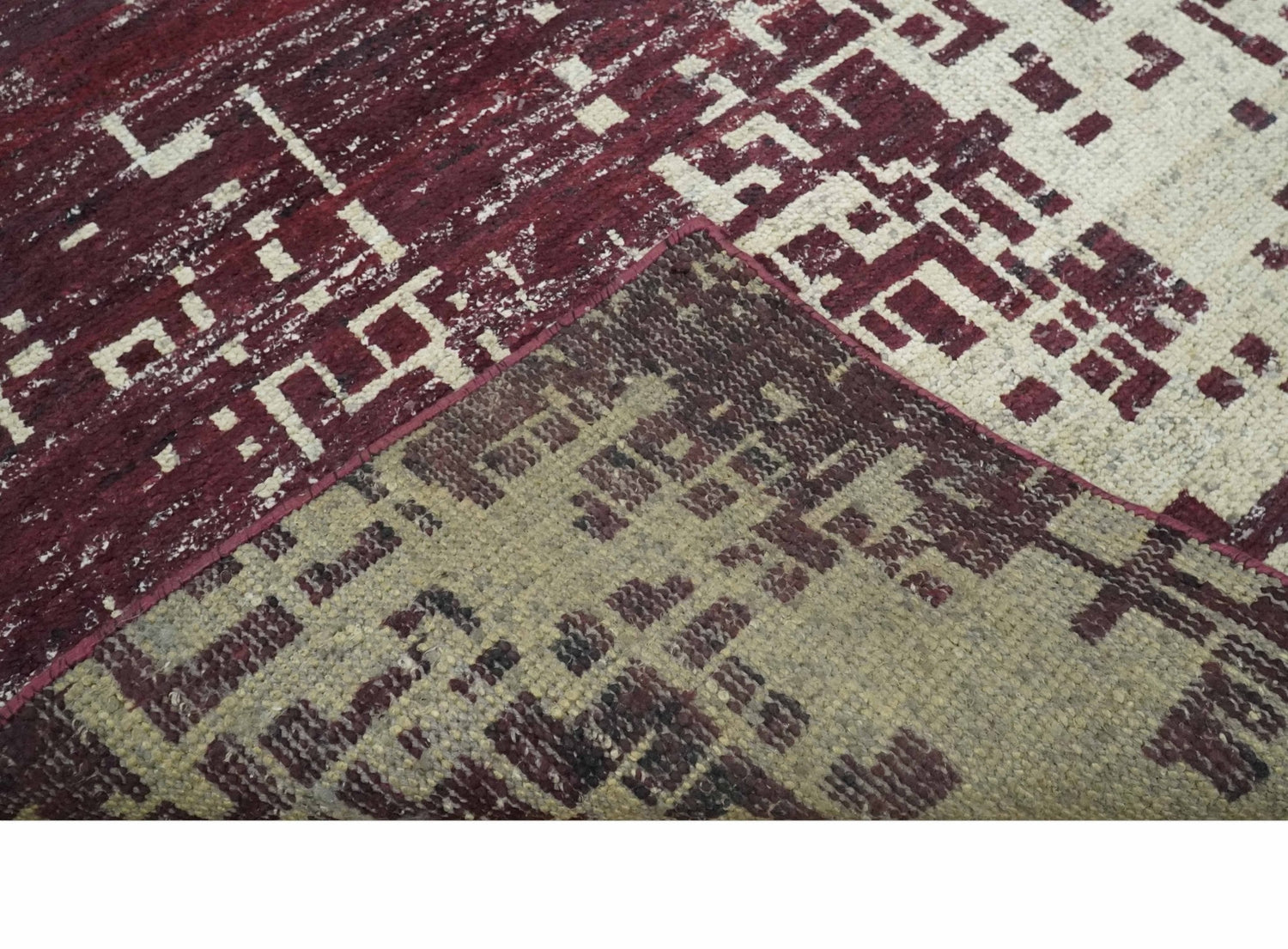 Hand Knotted 5x8 Maroon and Ivory Modern Abstract Contemporary Recycled Silk Area Rug - 5x8 is backordered and will ship as soon as it is back in stock.