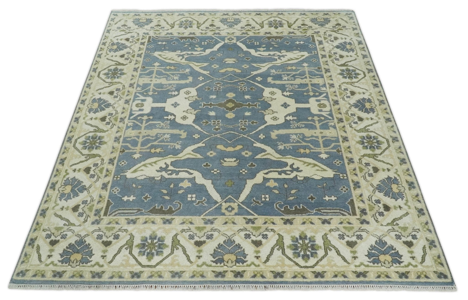 Hand Knotted 8x10 Antique Style Oriental Oushak Gray, Ivory and Beige Wool Area Rug