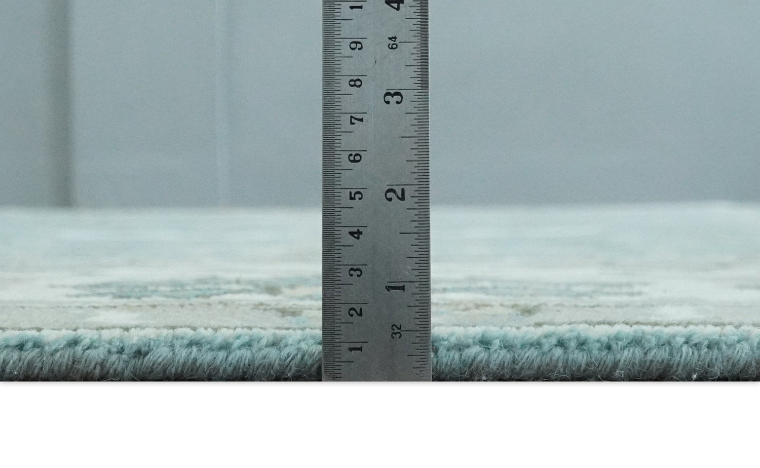 The Oriental Oushak design with a classic color combination of Aqua, Ivory and Silver gives it an antique look. The rug is made with fine Wool. It is a perfect pick to give your interior a classic feel.
