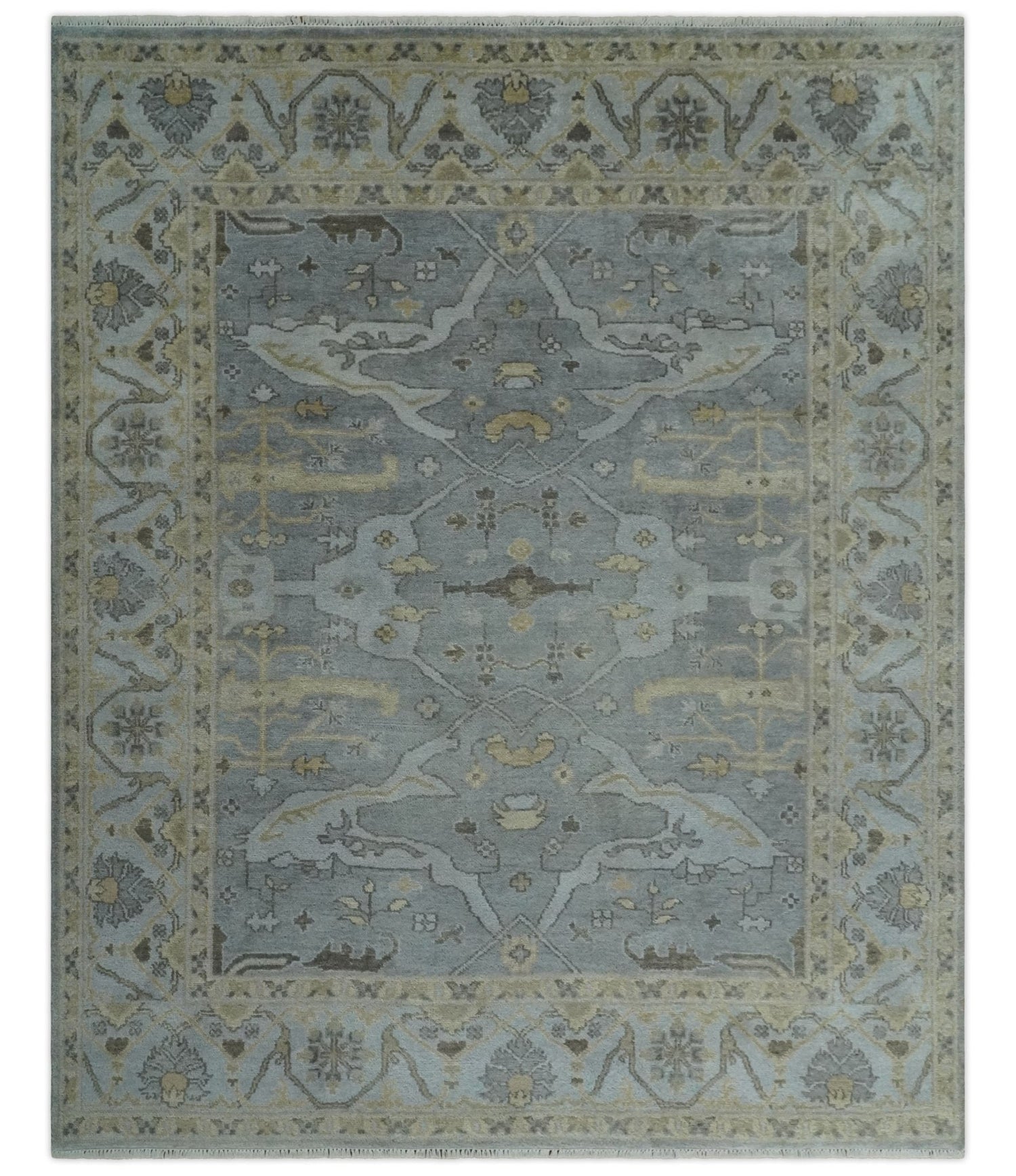 Hand Knotted 8x10 Oriental Oushak Charcoal Silver and Beige Wool Area Rug | TRDCP1182810 - 8.2x9.8 is backordered and will ship as soon as it is back in stock.