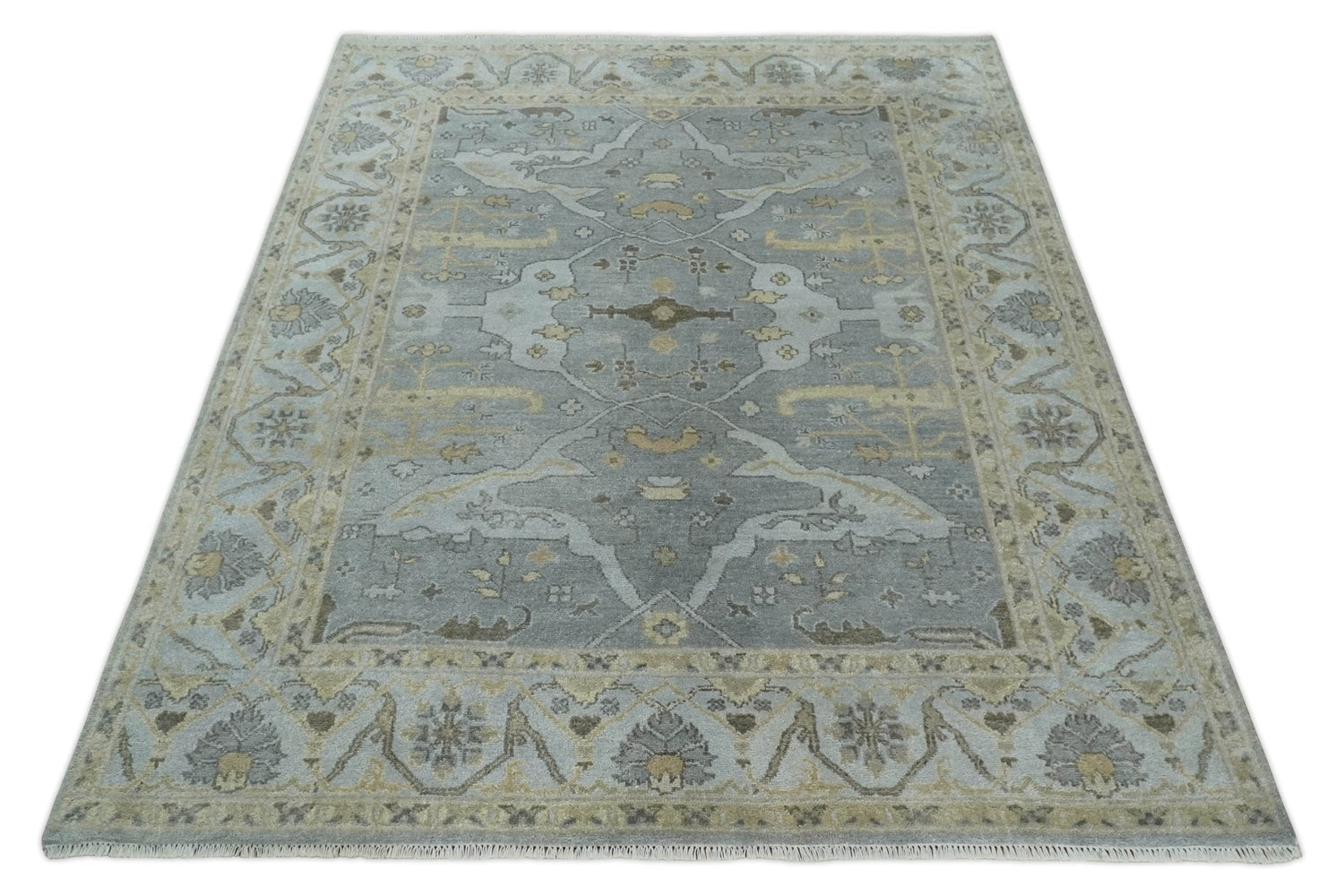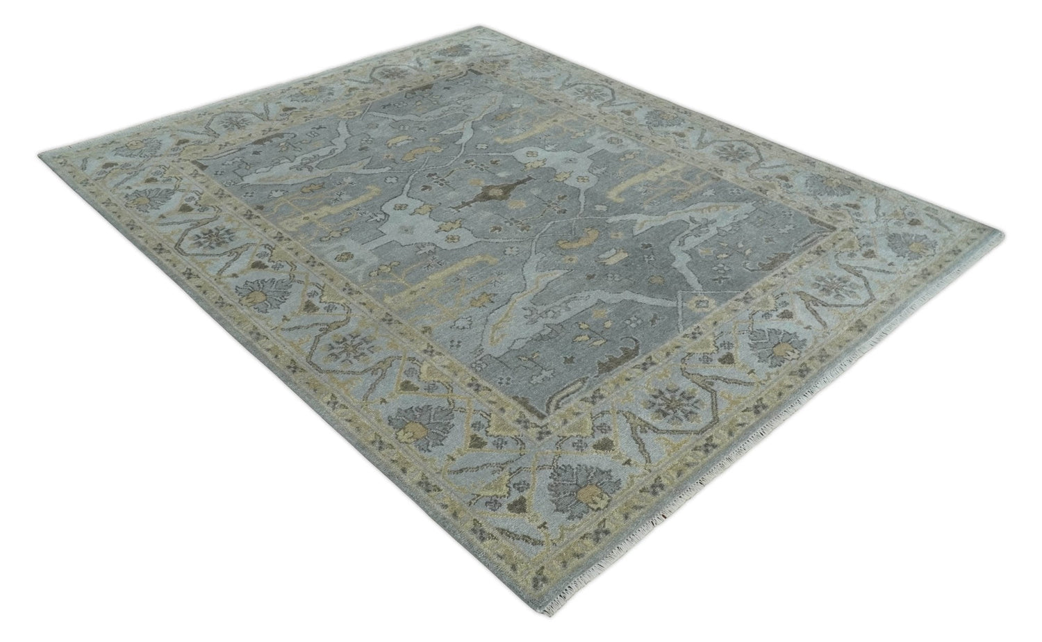 Hand Knotted 8x10 Oriental Oushak Silver and Beige Wool Area Rug | TRDCP1198810 - 8.1x9.8 is backordered and will ship as soon as it is back in stock.