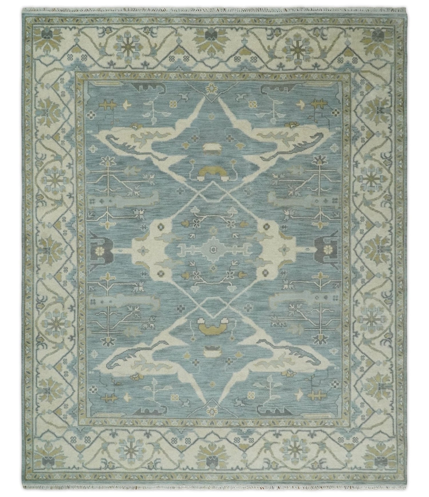 Hand Knotted 8x10 Oriental Oushak Silver, Ivory and Beige Wool Area Rug | TRDCP1195810