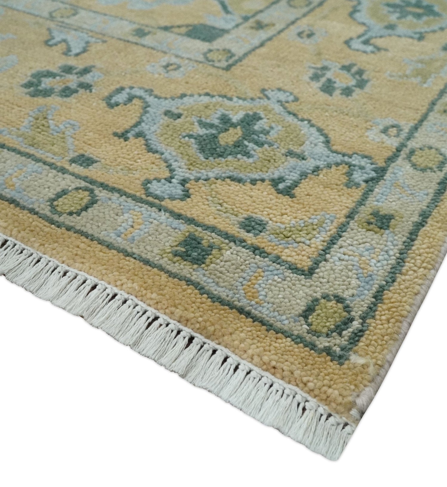 Hand Knotted 9x12 Oriental Oushak Beige and Blue Wool Area Rug | TRDCP1085912 - 8.8x12 is backordered and will ship as soon as it is back in stock.
