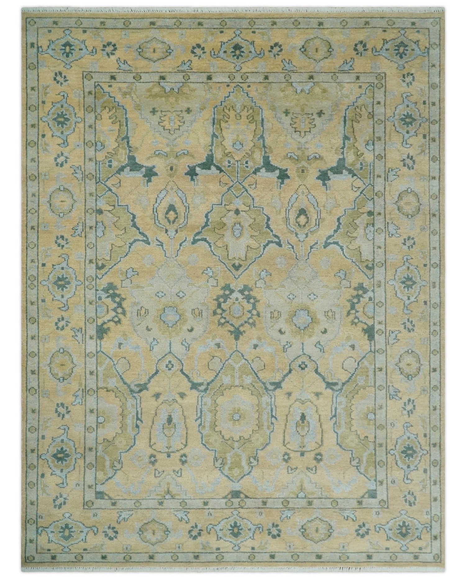 Hand Knotted 9x12 Oriental Oushak Beige and Blue Wool Area Rug | TRDCP1085912