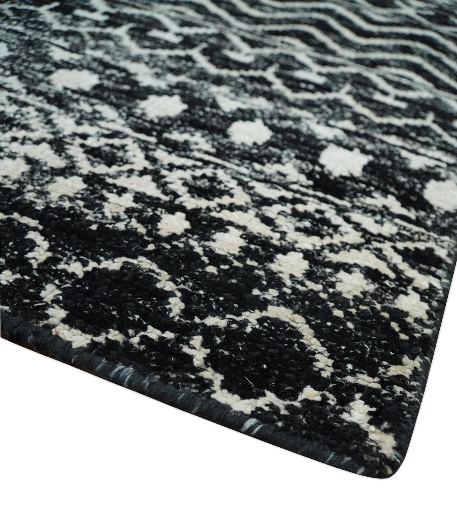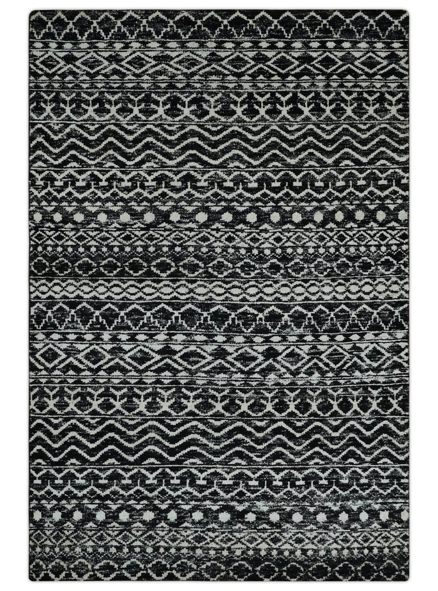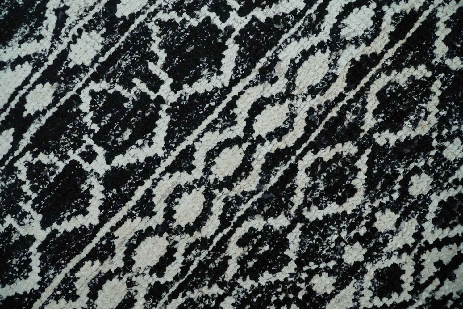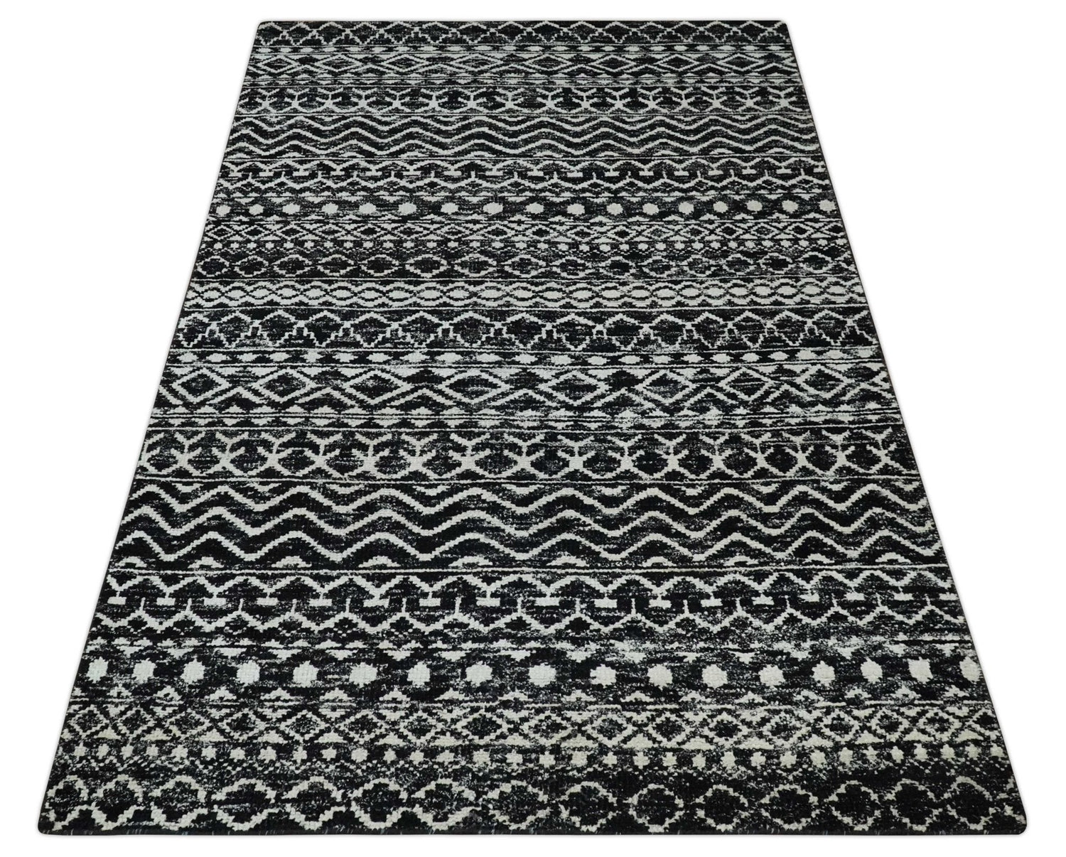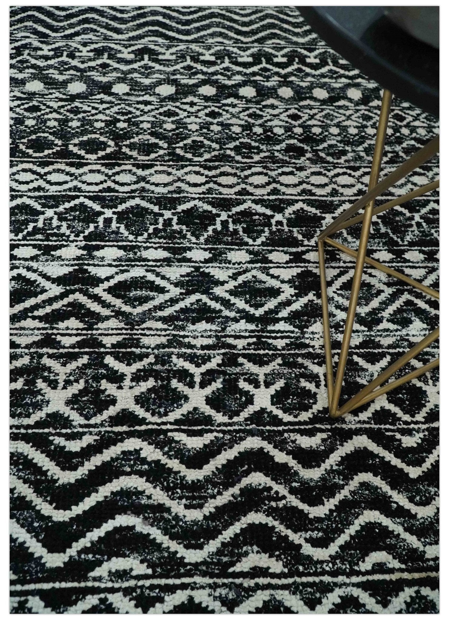 Hand Knotted Black and Ivory Modern Contemporary Tribal Trellis Recycled Silk Area Rug