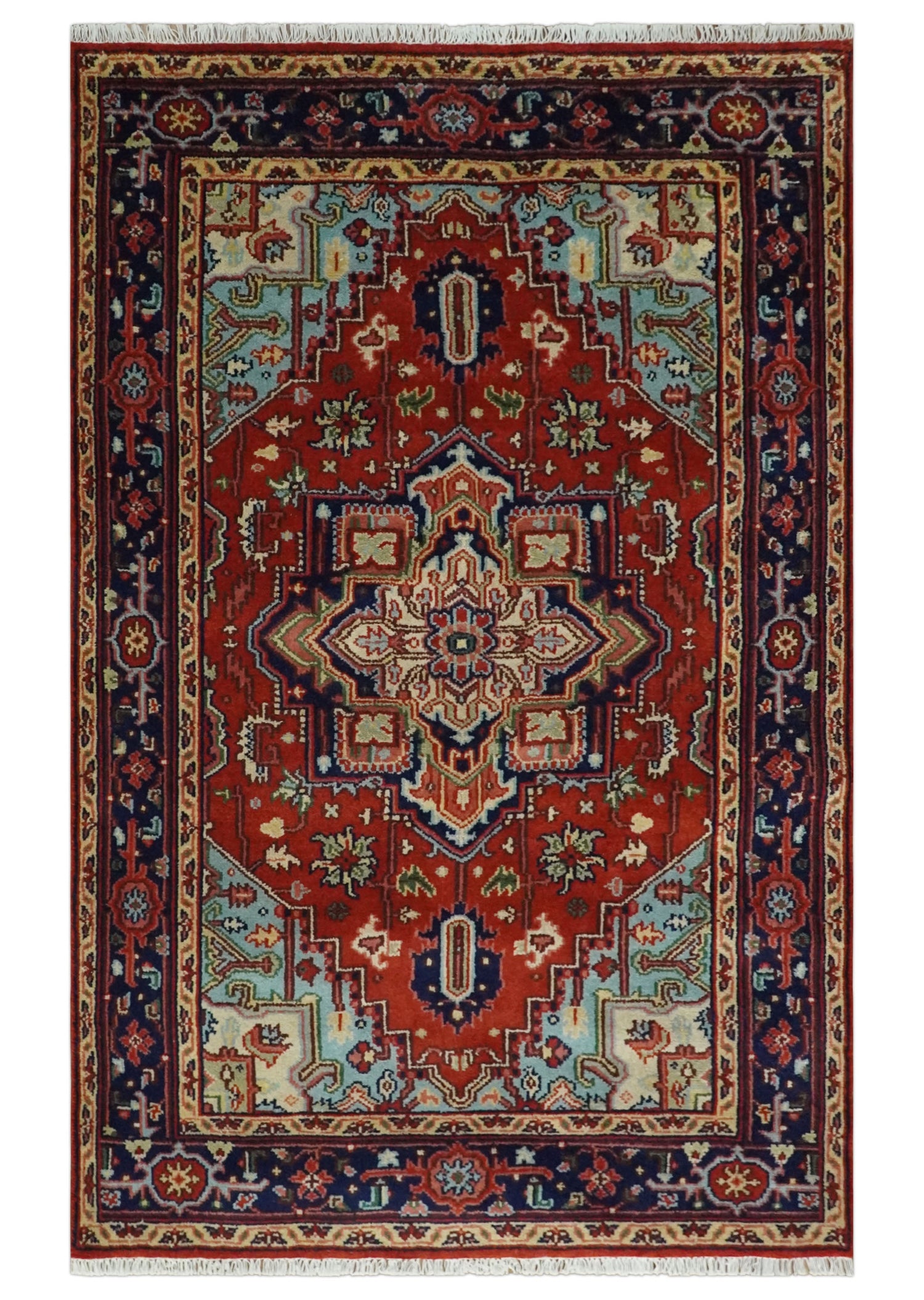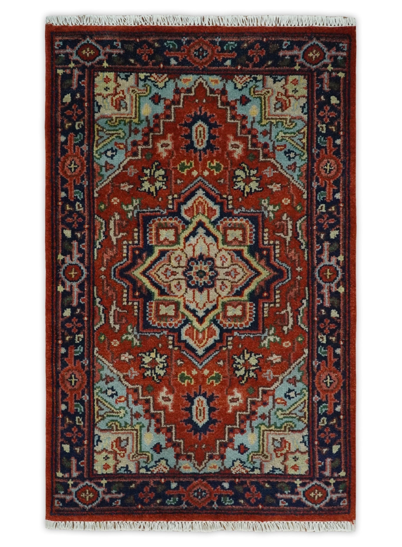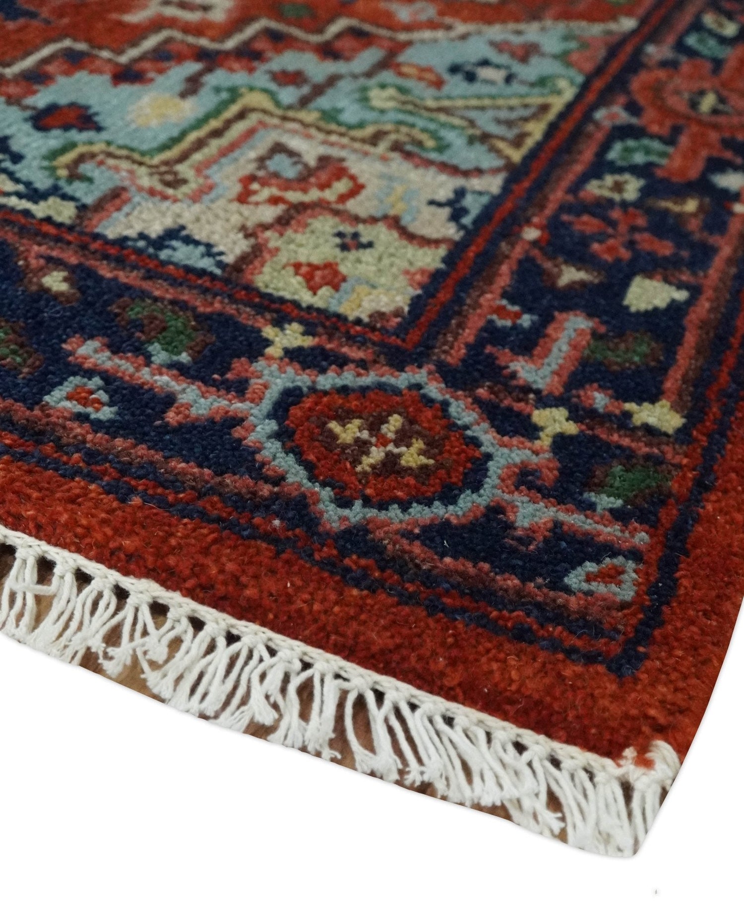Hand knotted Brown, Aqua and Blue Traditional Heriz Serapi wool area rug - 3x5 is backordered and will ship as soon as it is back in stock.