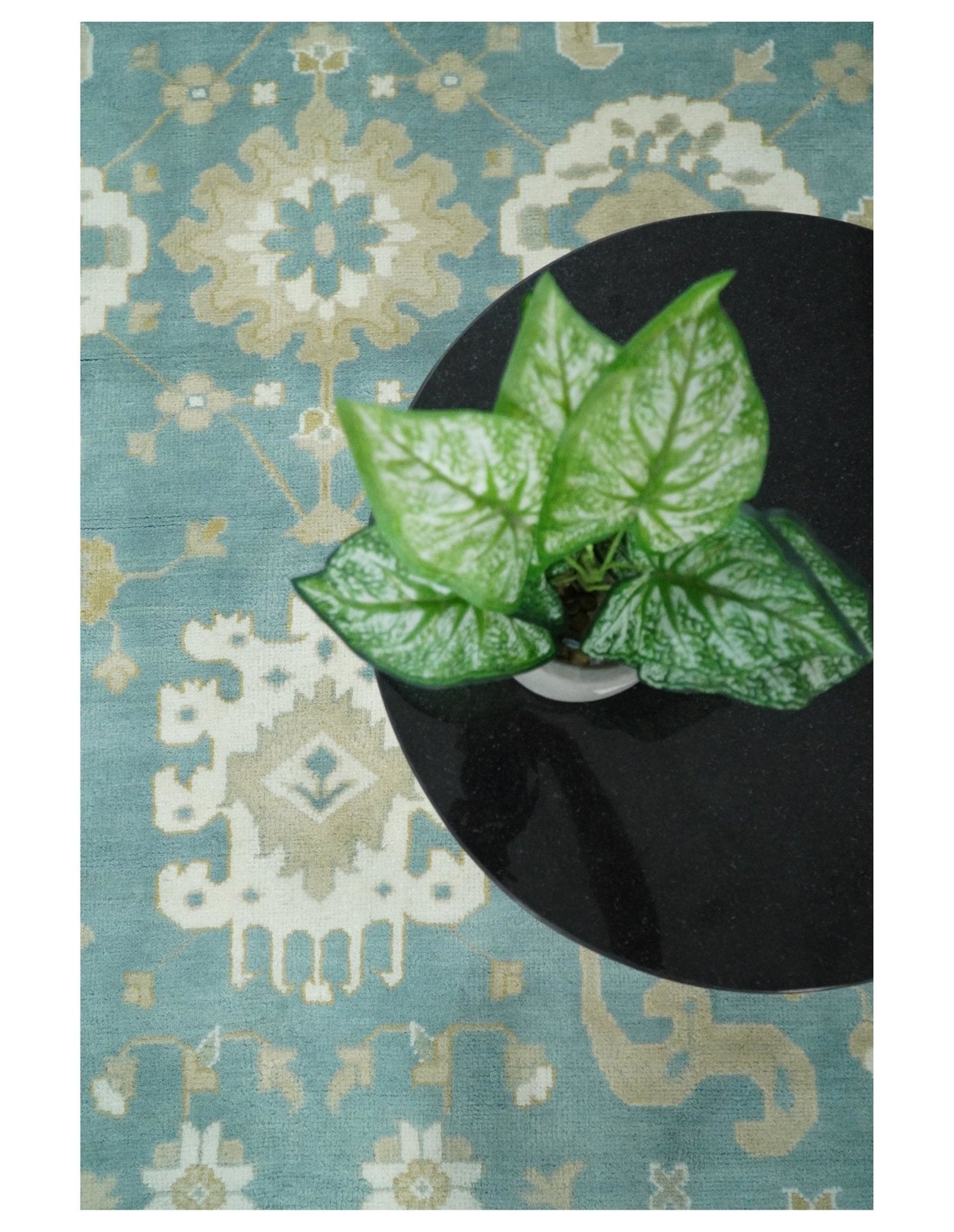 Hand Knotted Persian Oushak 10x14 Blue and Beige Large Wool Area Rug | TRDCP73B1014