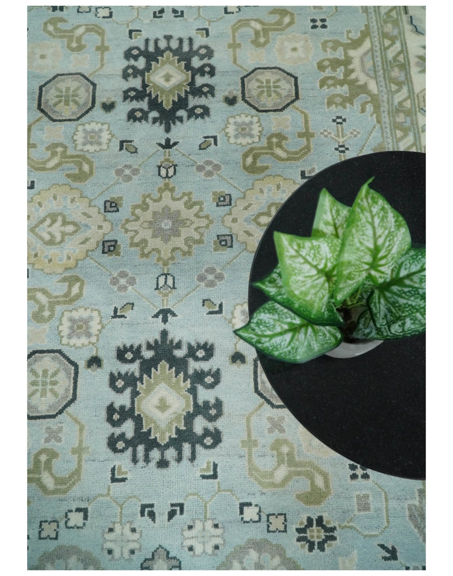 Hand Knotted Persian Oushak 8x10 Blue and Beige Antique Large Wool Area Rug | TRDCP236810