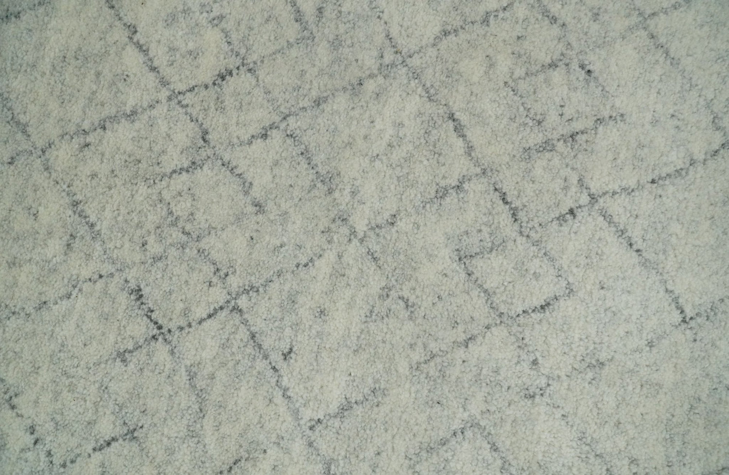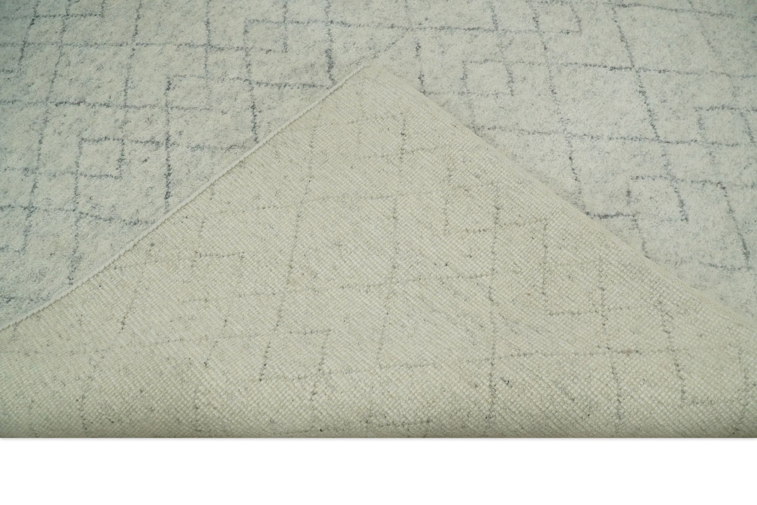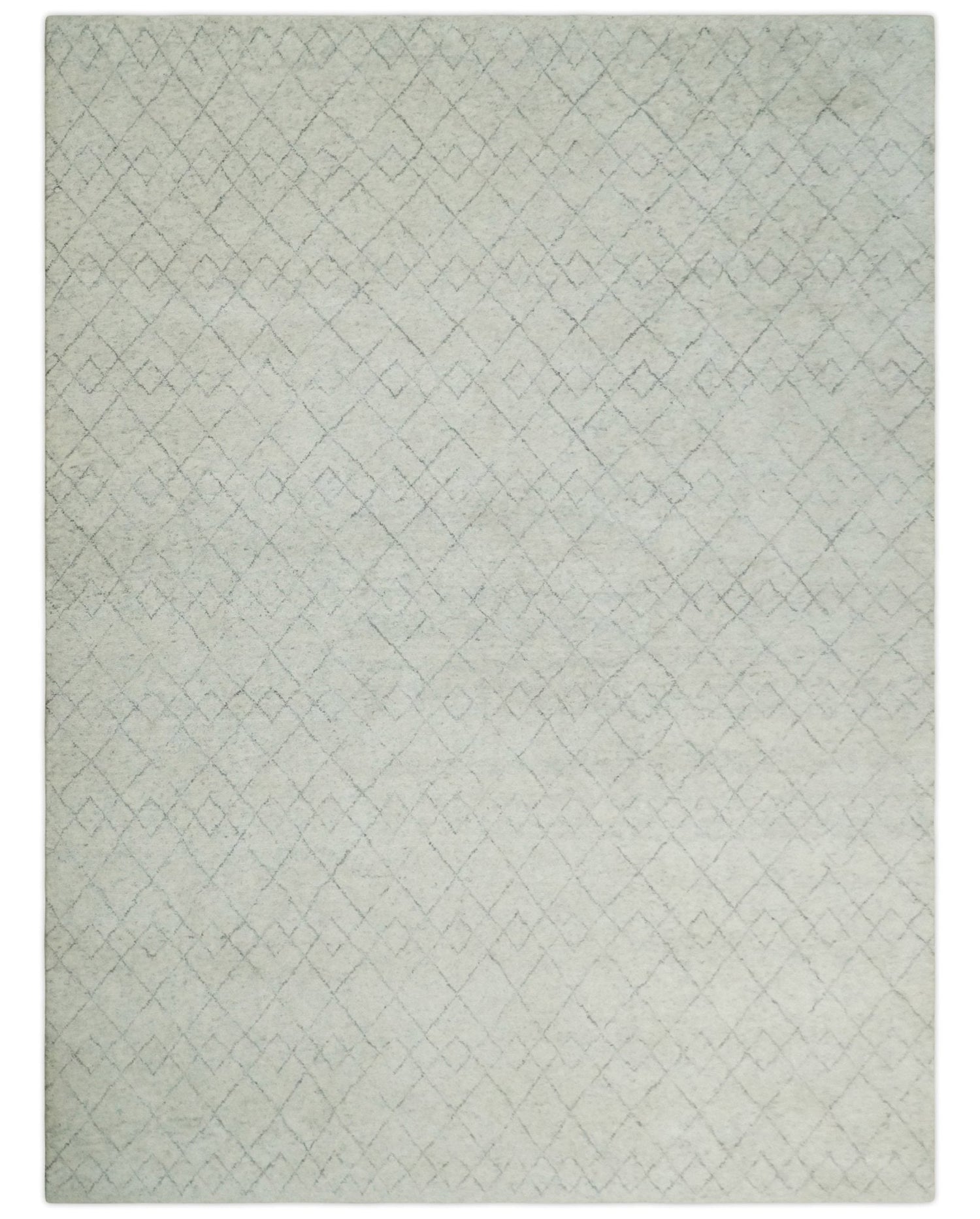 Hand Knotted Silver and Gray 9x12 Trellis Moroccan Rug Made with Fine Wool | TRDCP638912