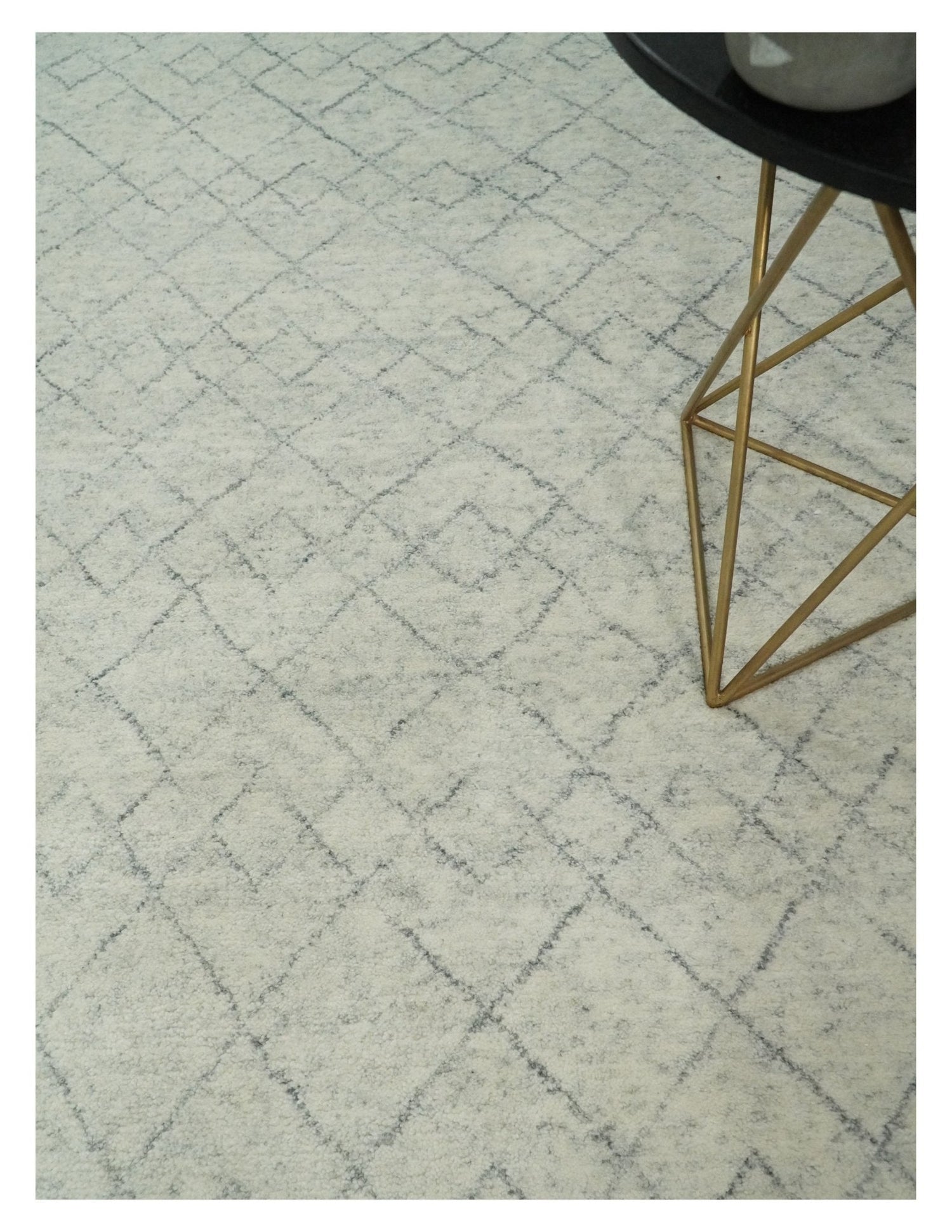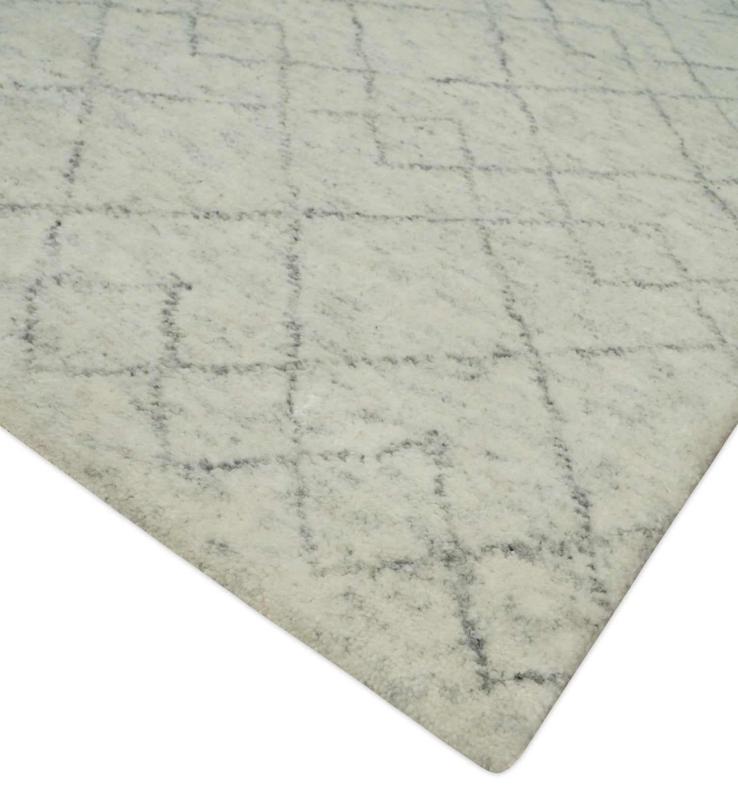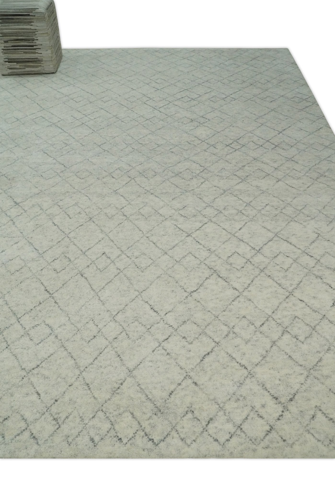 Hand Knotted Silver and Gray 9x12 Trellis Moroccan Rug Made with Fine Wool | TRDCP638912