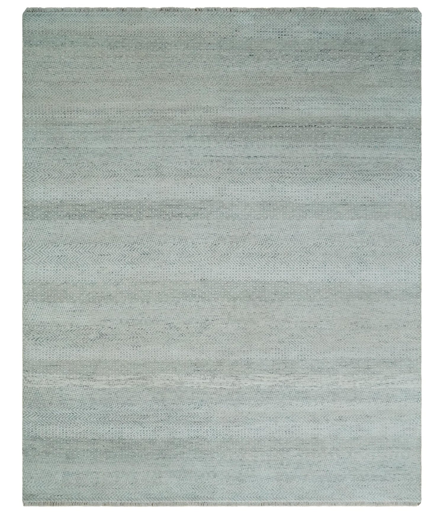 Hand Knotted Silver, Ivory and Gray 8x10 Modern Geometric Trellis Scandinavian Wool Area Rug | TRDCP945810
