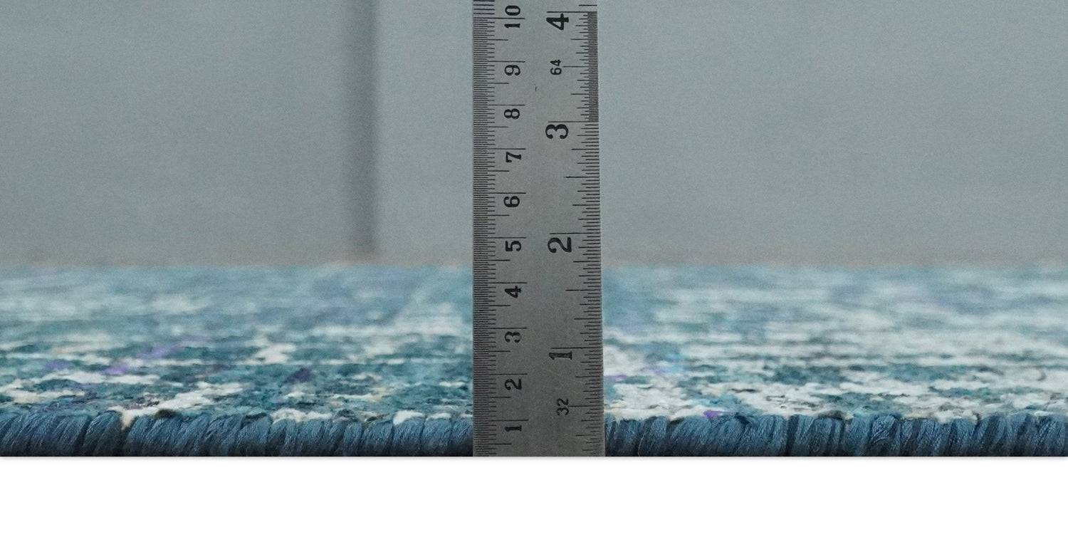 Hand Knotted Teal and Ivory Modern Abstract Contemporary Recycled Silk Area Rug