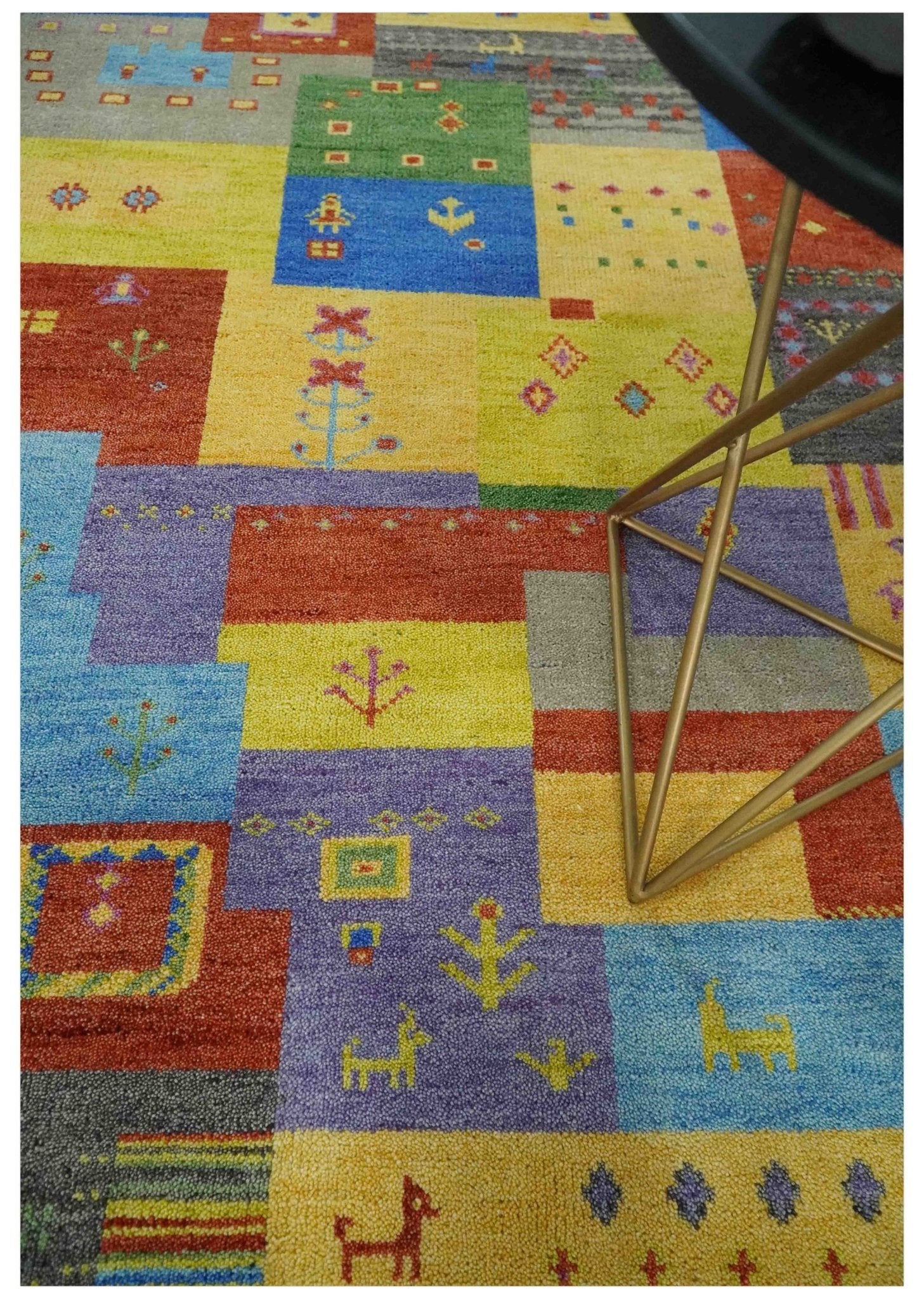 This Hand Knotted Traditional Antique Tribal Style Gabbeh Design Wool Area Rug is perfect for creating a unique and beautiful style in any home. Rug features a traditional design in multicolored antique style, hand-knotted from 100% wool for softness and beauty. Make a statement with this distinct and authentic rug.