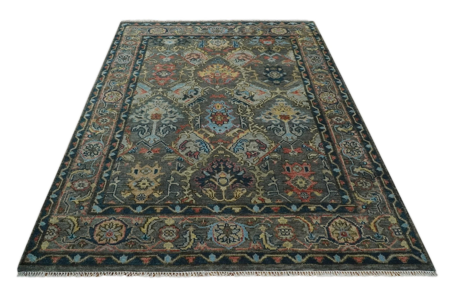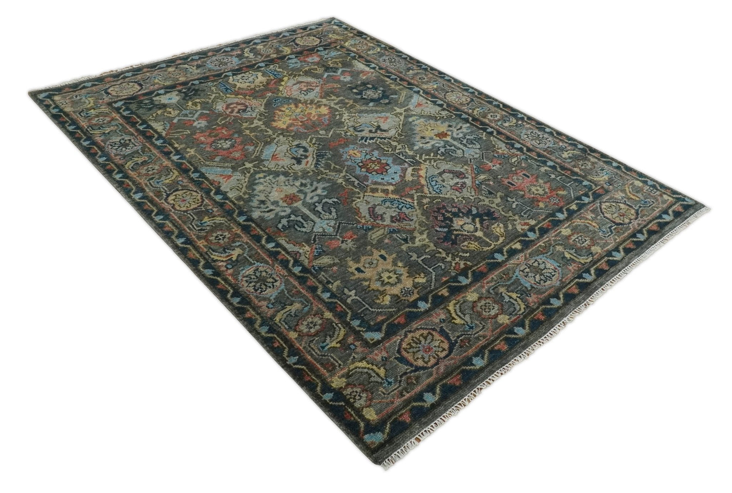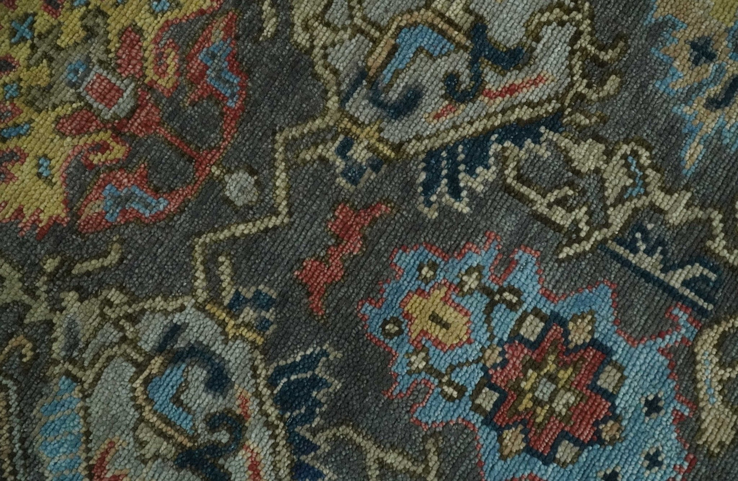 Hand Spun Wool Traditional Legacy Oushak Blue, Rust and Charcoal Area Rug