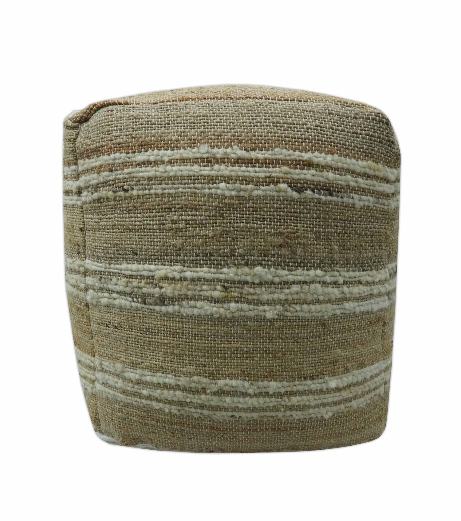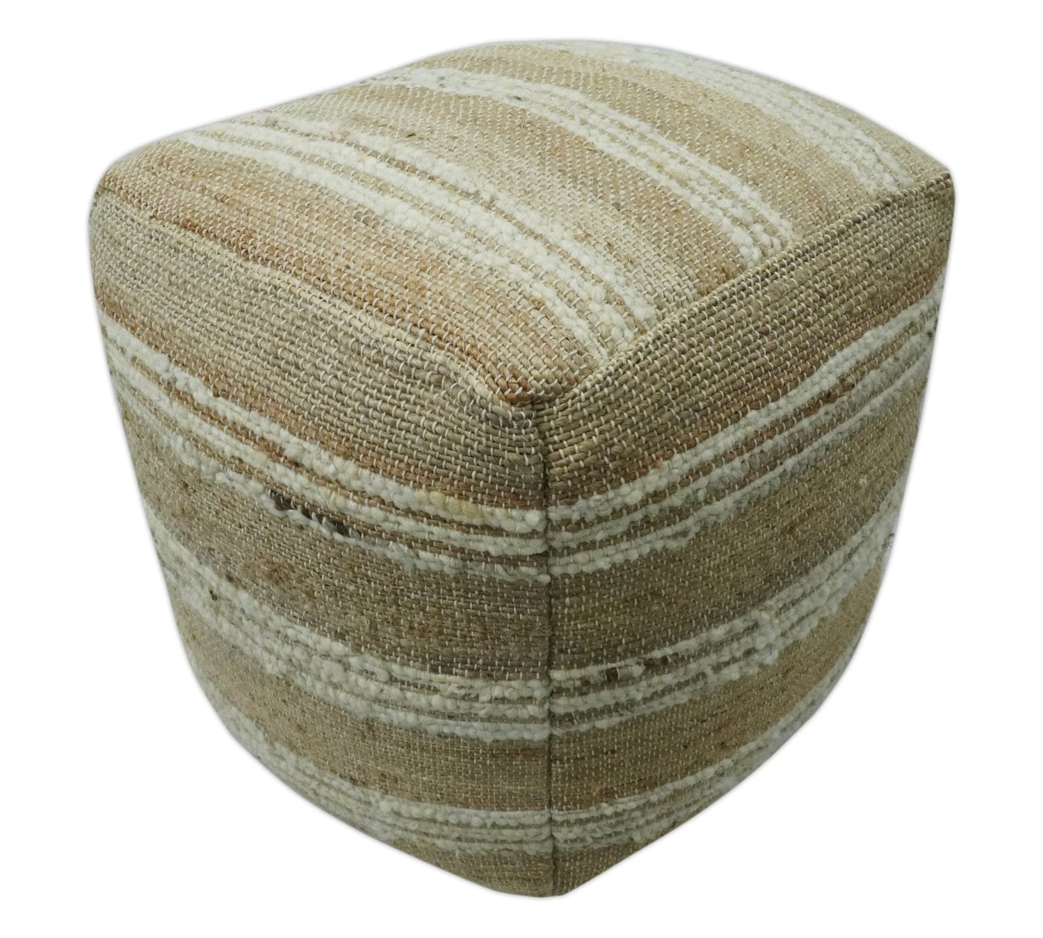 Hand Woven Beige and Ivory Stripes Design tassel Jute and wool Pouf
