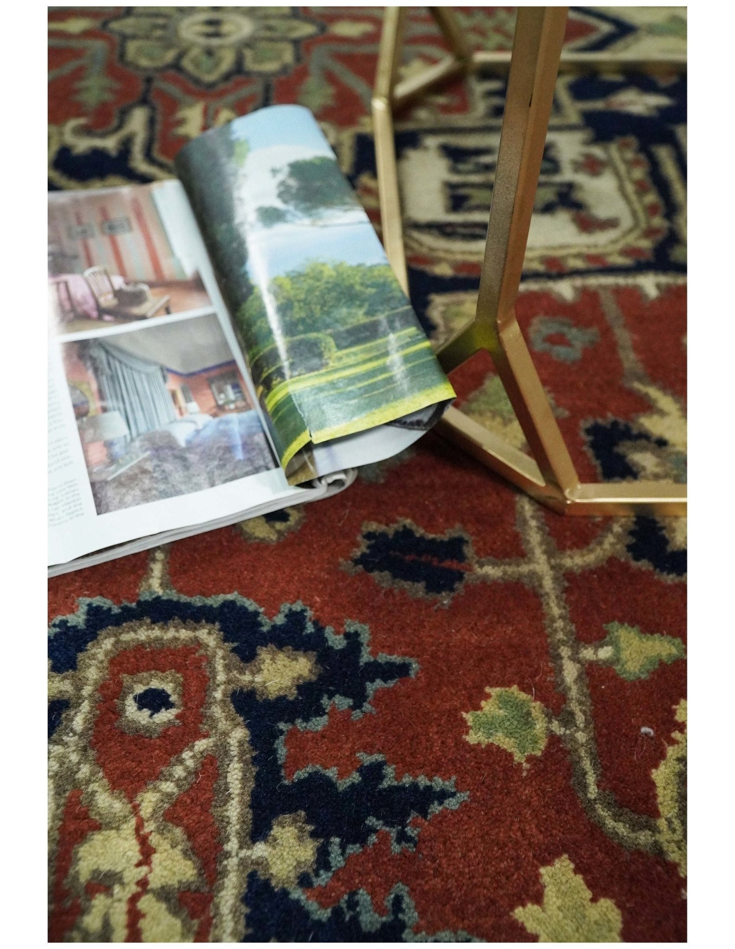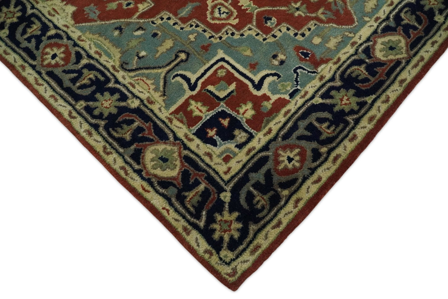 Handmade 5x8 Rust and Blue made with fine wool Area Rug | TRDCP11658