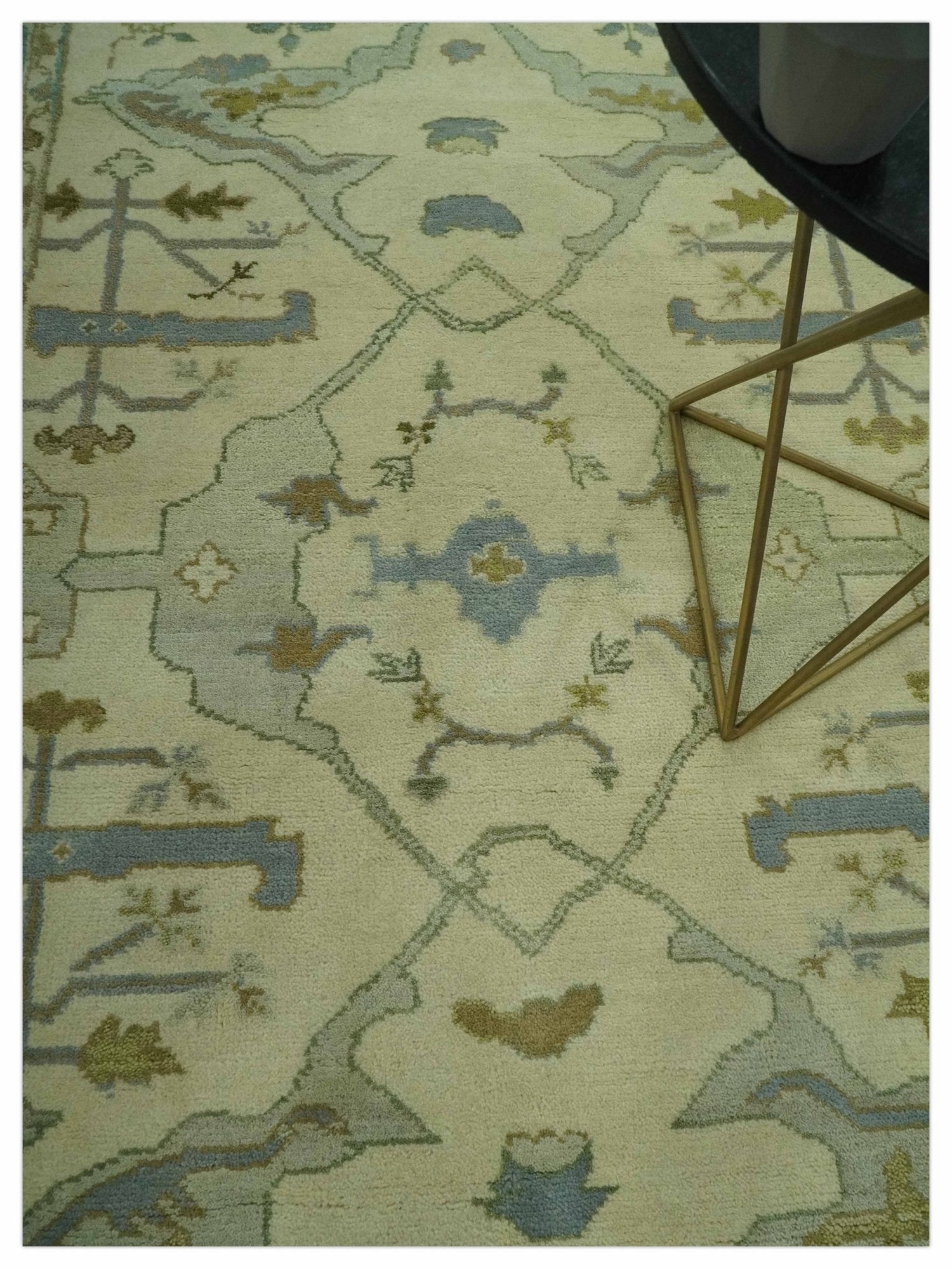 Ivory and Blue 6x9 Hand Knotted Traditional Oriental Oushak wool area rug - 6x9 is backordered and will ship as soon as it is back in stock.