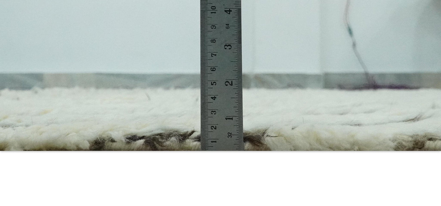 Expertly hand-knotted in a modern Moroccan style, this plush wool rug features a timeless color palette of ivory, beige, and charcoal. The luxurious plush pile adds comfort and warmth to any room, while the intricate stripes add a touch of contemporary elegance. Available in a versatile 5x8 size.