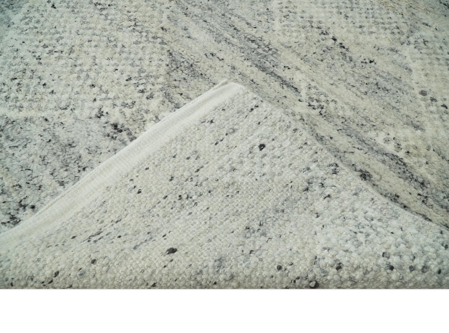 Ivory, Charcoal and Beige 8x10 hand knotted Geometrical wool Area rug