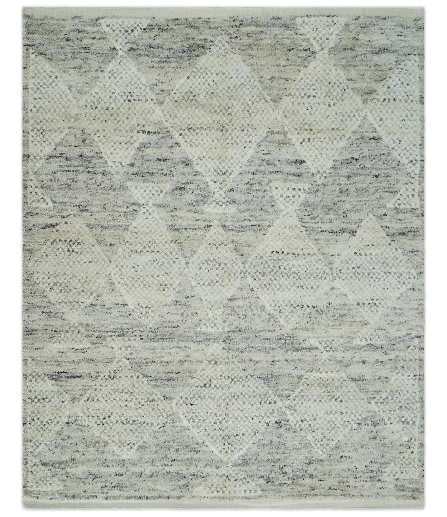 This hand knotted wool rug features a geometric design in ivory, charcoal, and beige. Its 8.3x9.10 size is perfect for any room, and its superior craftsmanship ensures lasting beauty and durability.