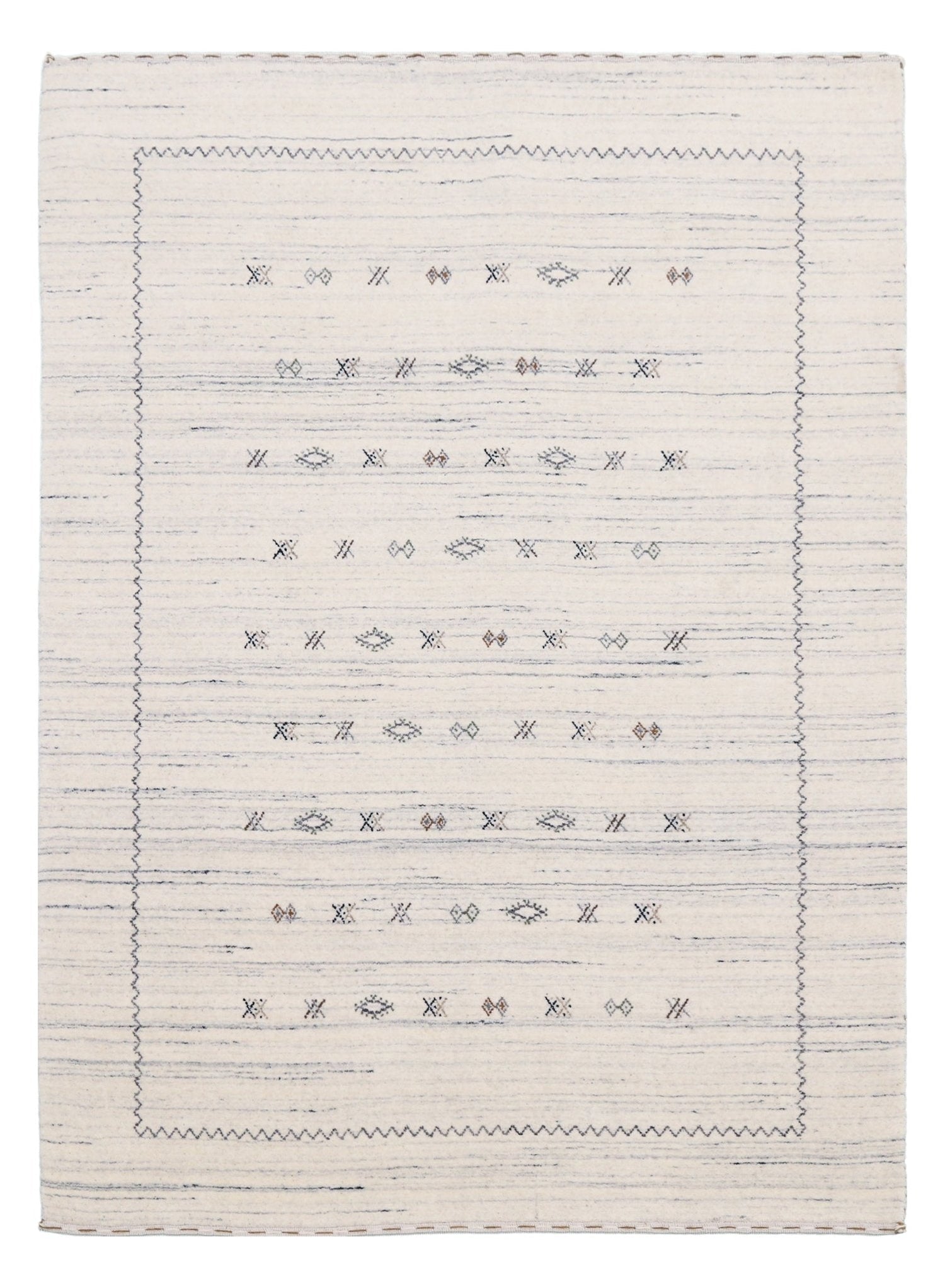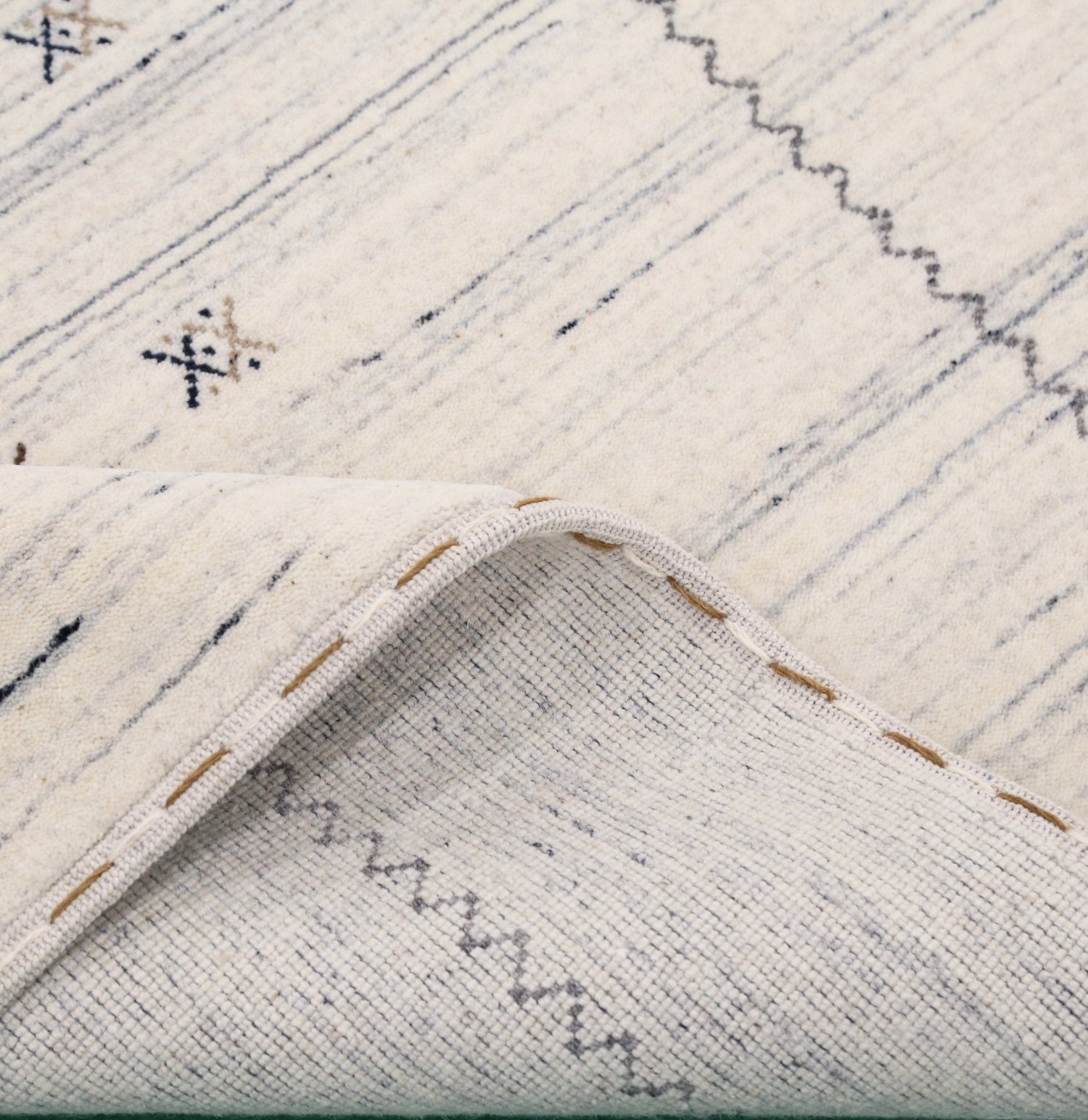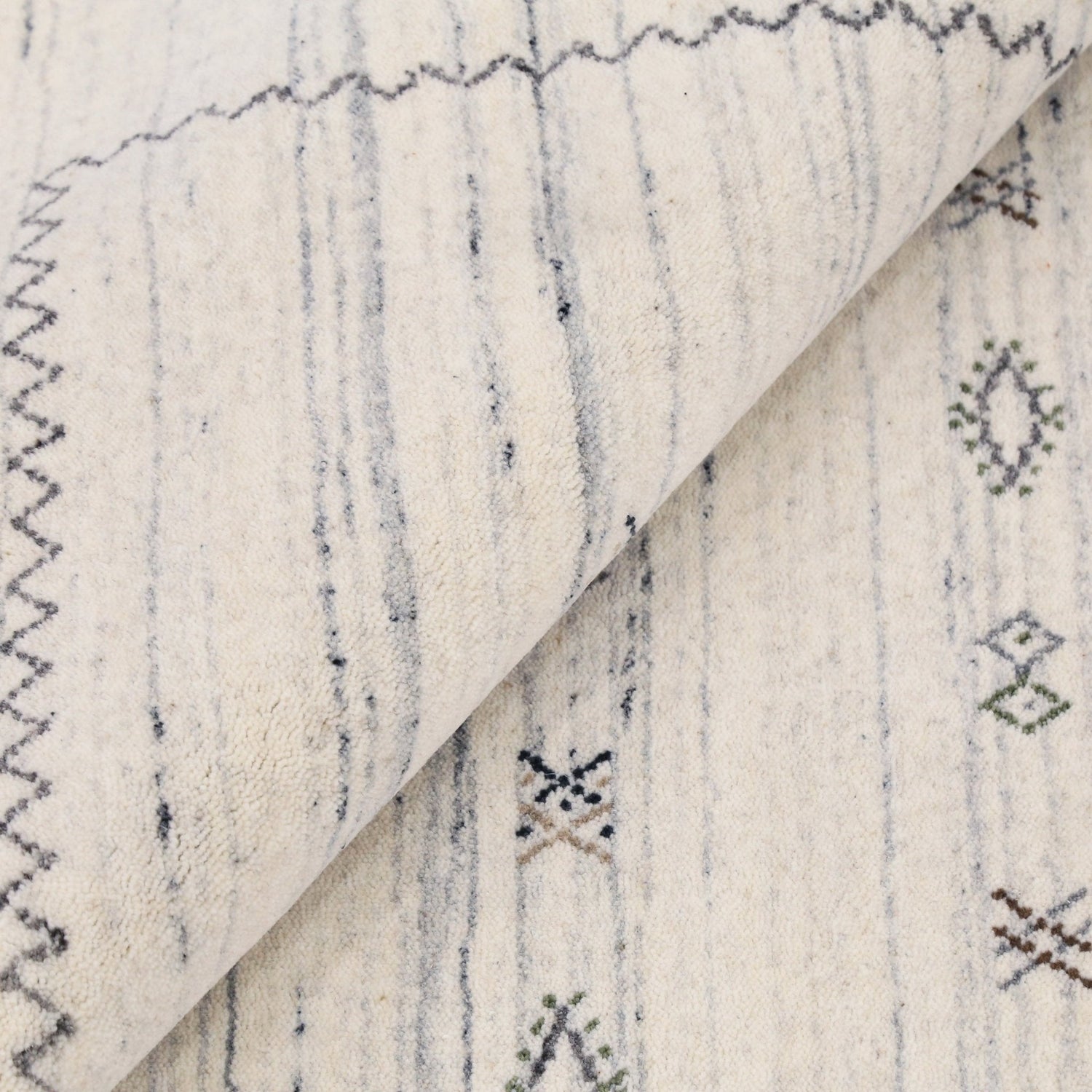 Ivory Modern Tribals Design Hand Loomed Wool Area Rug