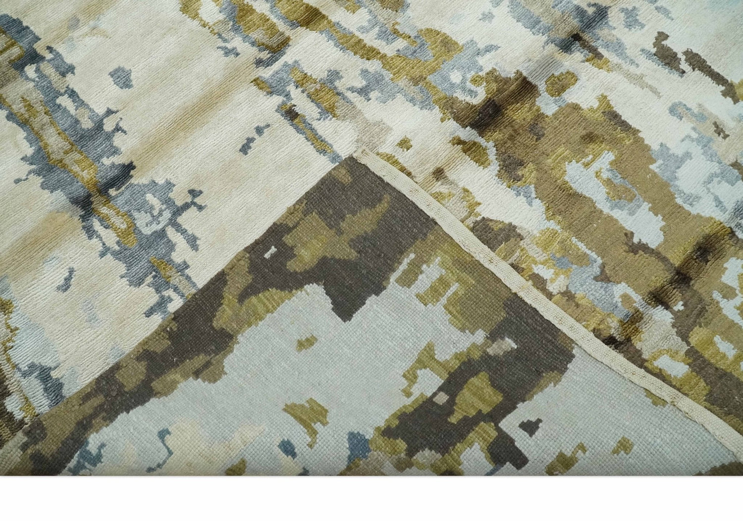 Ivory, Olive and Gray Modern Abstract 6x9 Hand Knotted Bamboo Silk Area Rug