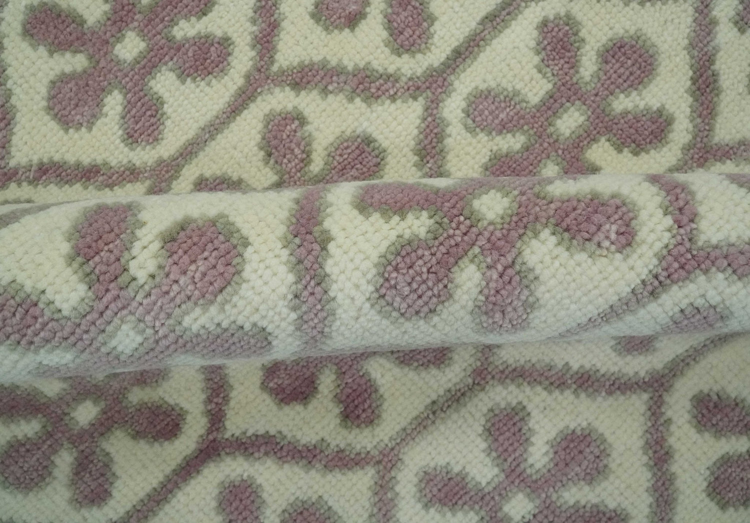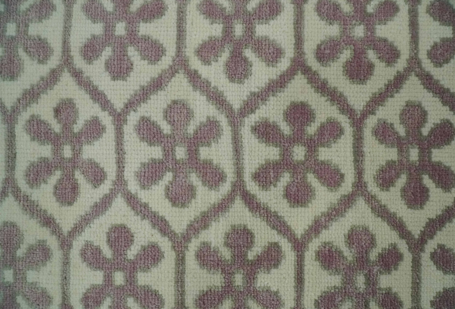Ivory, Purple and Gray Hand Knotted Geometrical Floral 8x10 wool Area Rug - 8x10 is backordered and will ship as soon as it is back in stock.