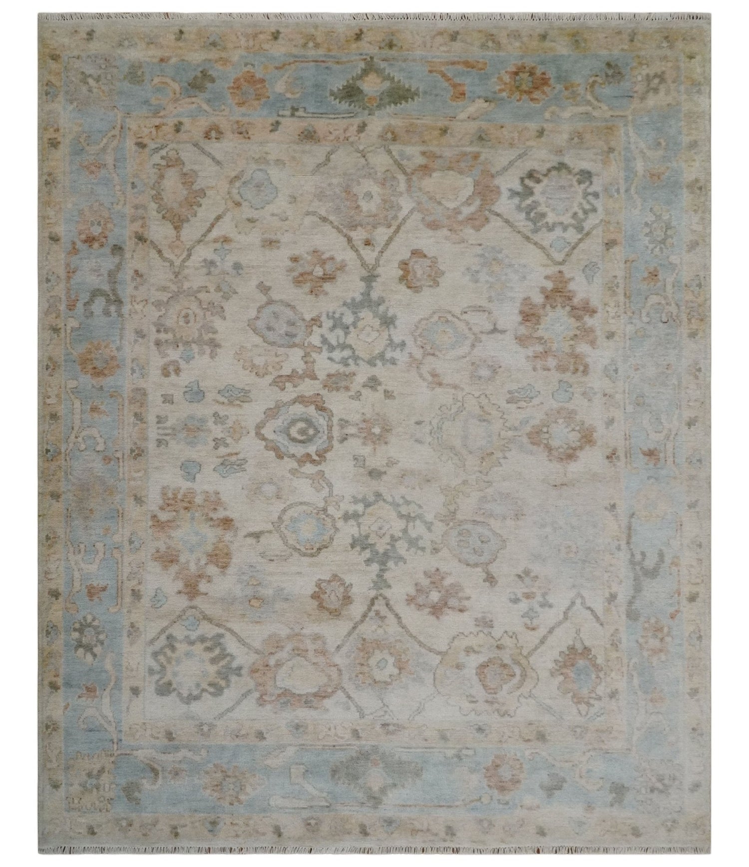 Made to Order Hand Knotted Ivory, Silver and Brown Traditional Antique Style Wool Area Rug