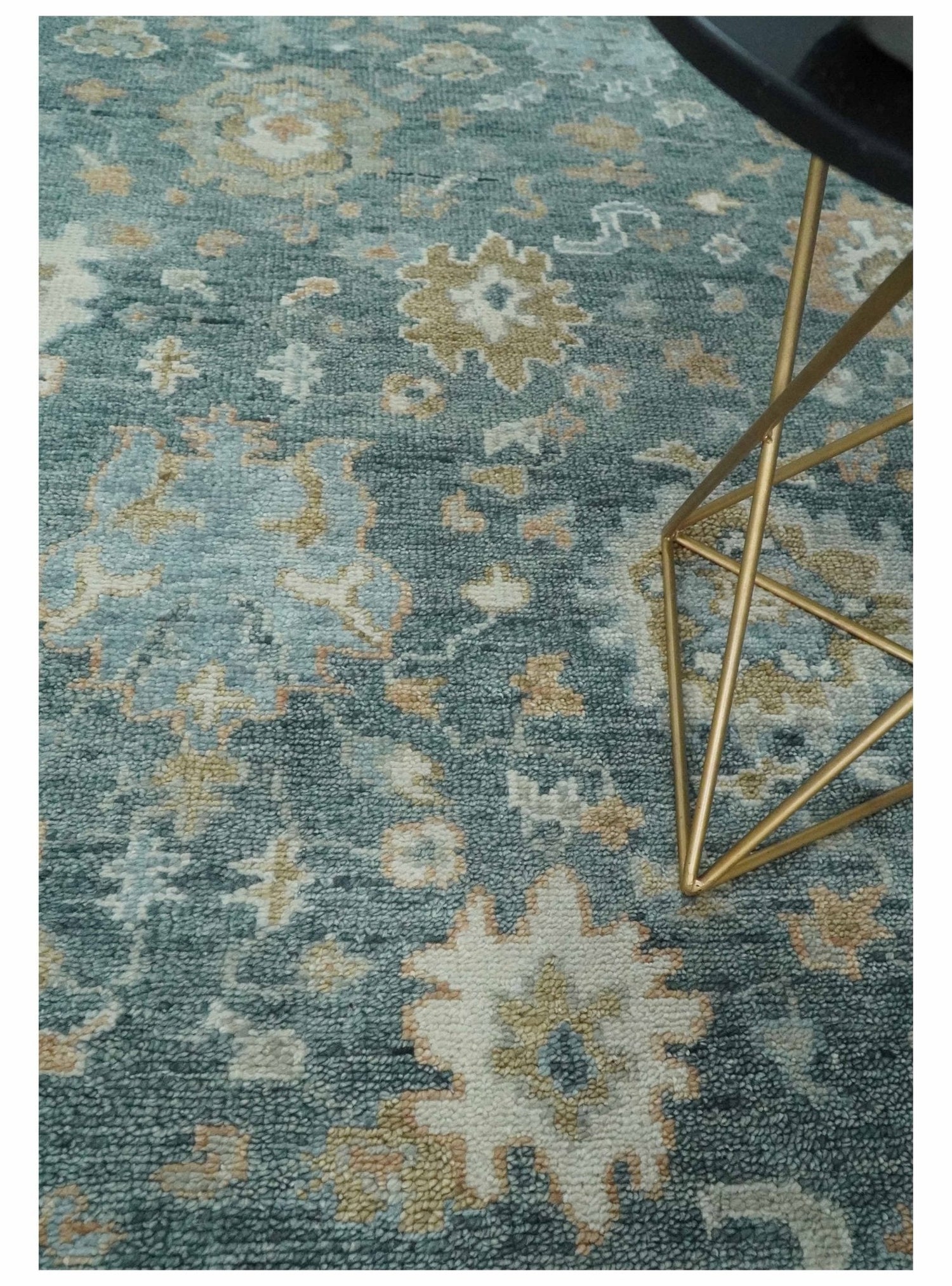 Made to Order Teal, Olive and Silver Antique Style Hand knotted Oushak wool Area Rug