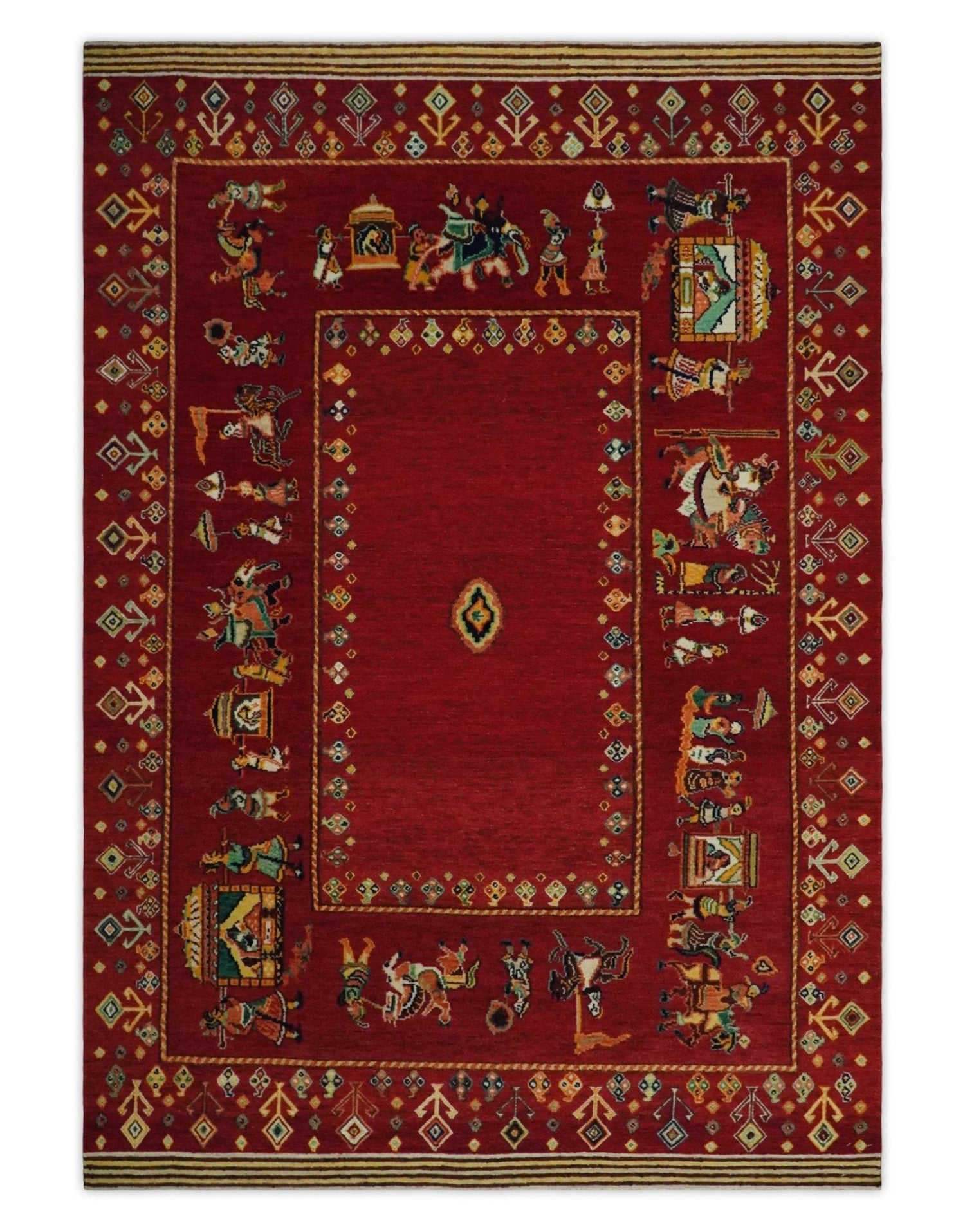 Maroon Indian Wedding 5x7, Hand Spun Wool Hand Knotted Antique Rug | KNT20 - 4.8x6.9 is backordered and will ship as soon as it is back in stock.