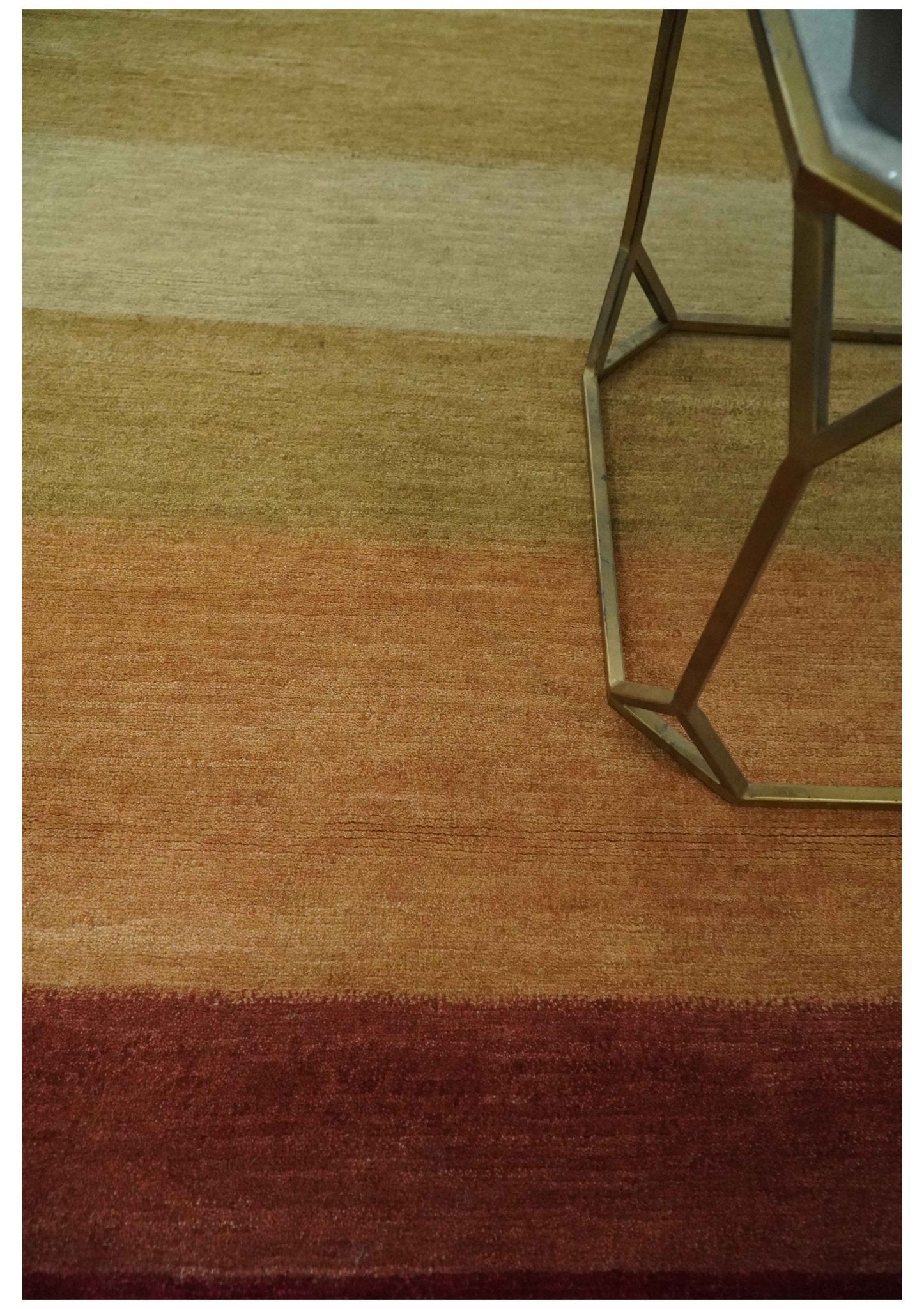 Maroon, Rust, Gold, Olive and Ivory Modern Stripes 5.6x6.6 Hand loom wool area Rug
