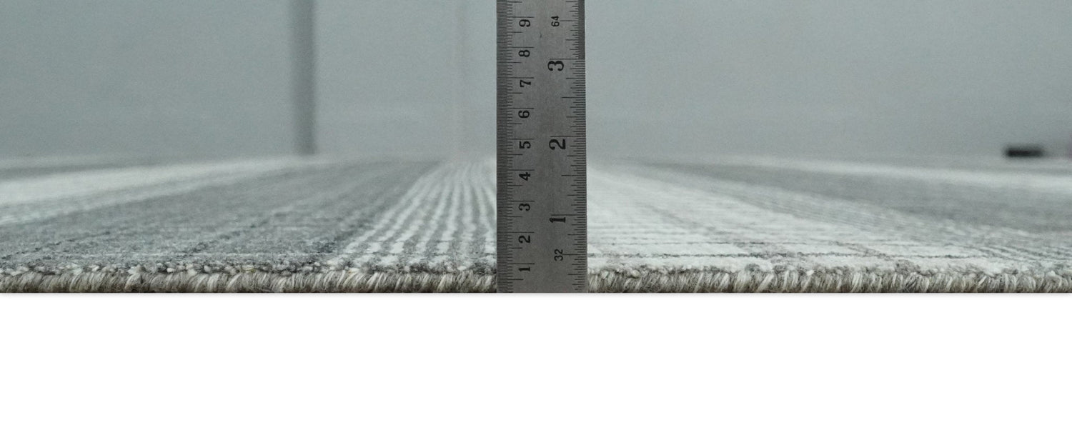 Modern 8x10 Hand Made Stripes Ivory, Gray and Brown Scandinavian Blended Wool Flatwoven Area Rug | KE23