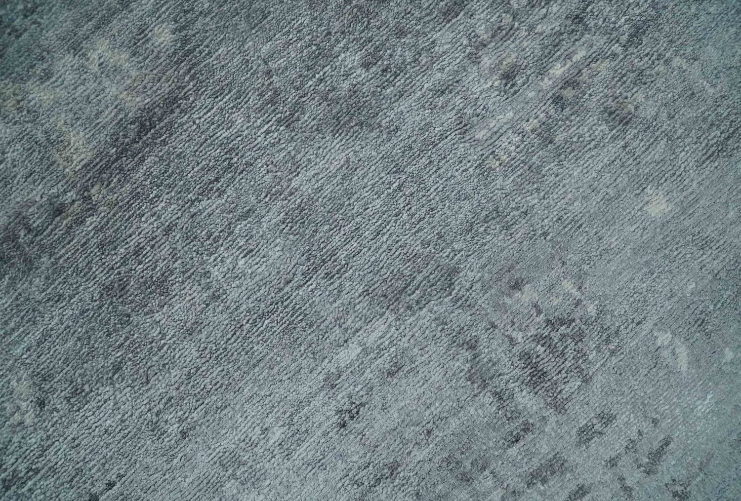 This modern abstract hand-knotted area rug features a luxurious combination of bamboo silk and charcoal colors. The high-quality craftsmanship ensures durability and a long-lasting design that will be a beautiful addition to any space. Enjoy the timeless beauty of this rug.