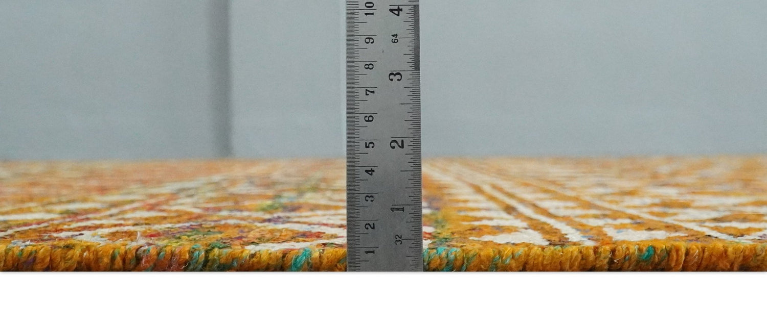 Modern Abstract 5x8 and 5.5x8.5 Gold and Ivory Recycled Art Silk Area Rug - 5x8 is backordered and will ship as soon as it is back in stock.