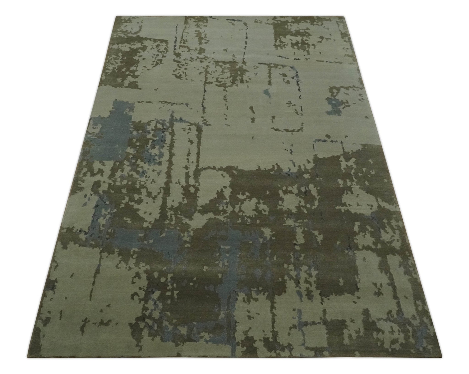 Modern abstract Beige, Olive and Gray 6x9 Hand Knotted Wool and Art Silk Area Rug